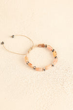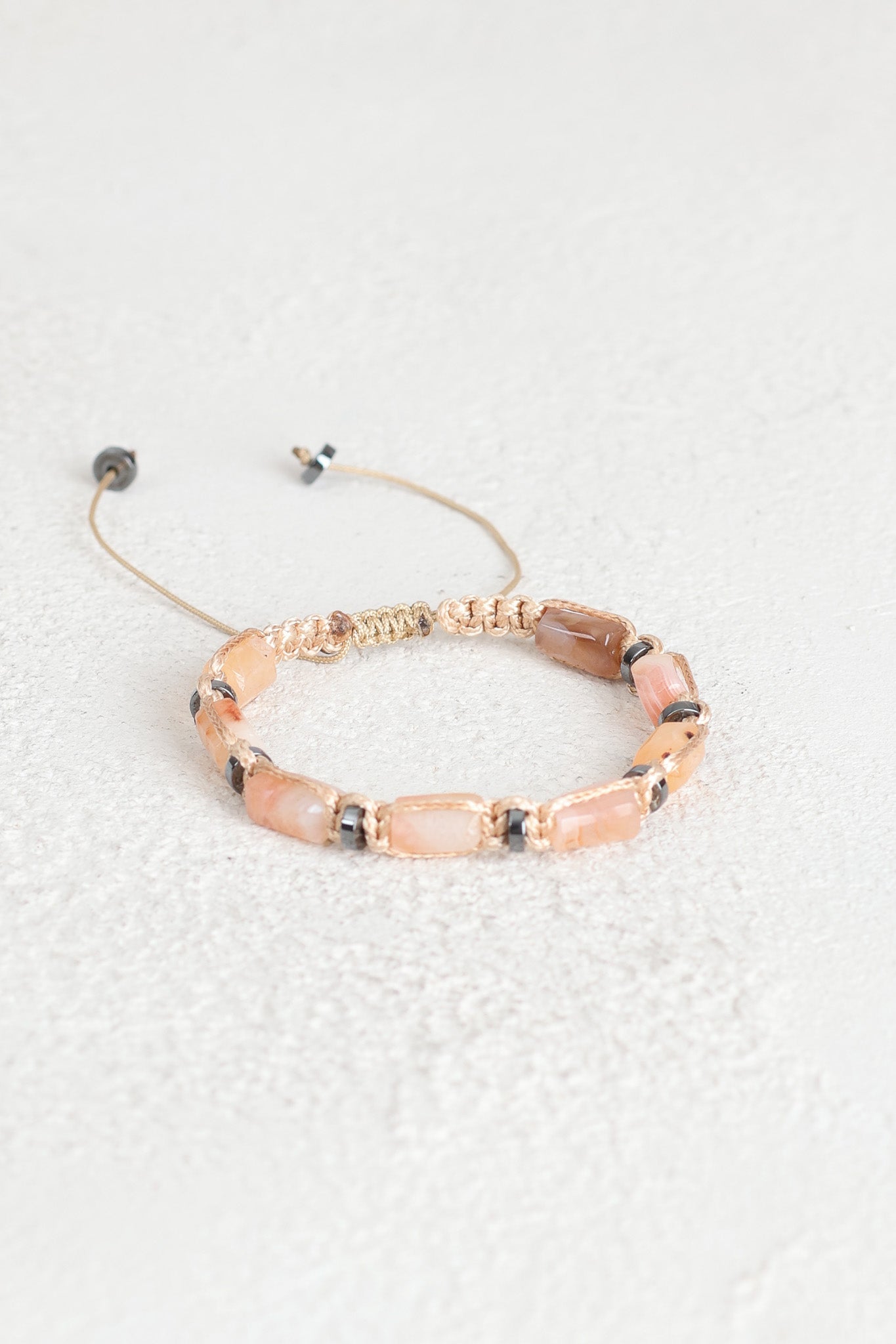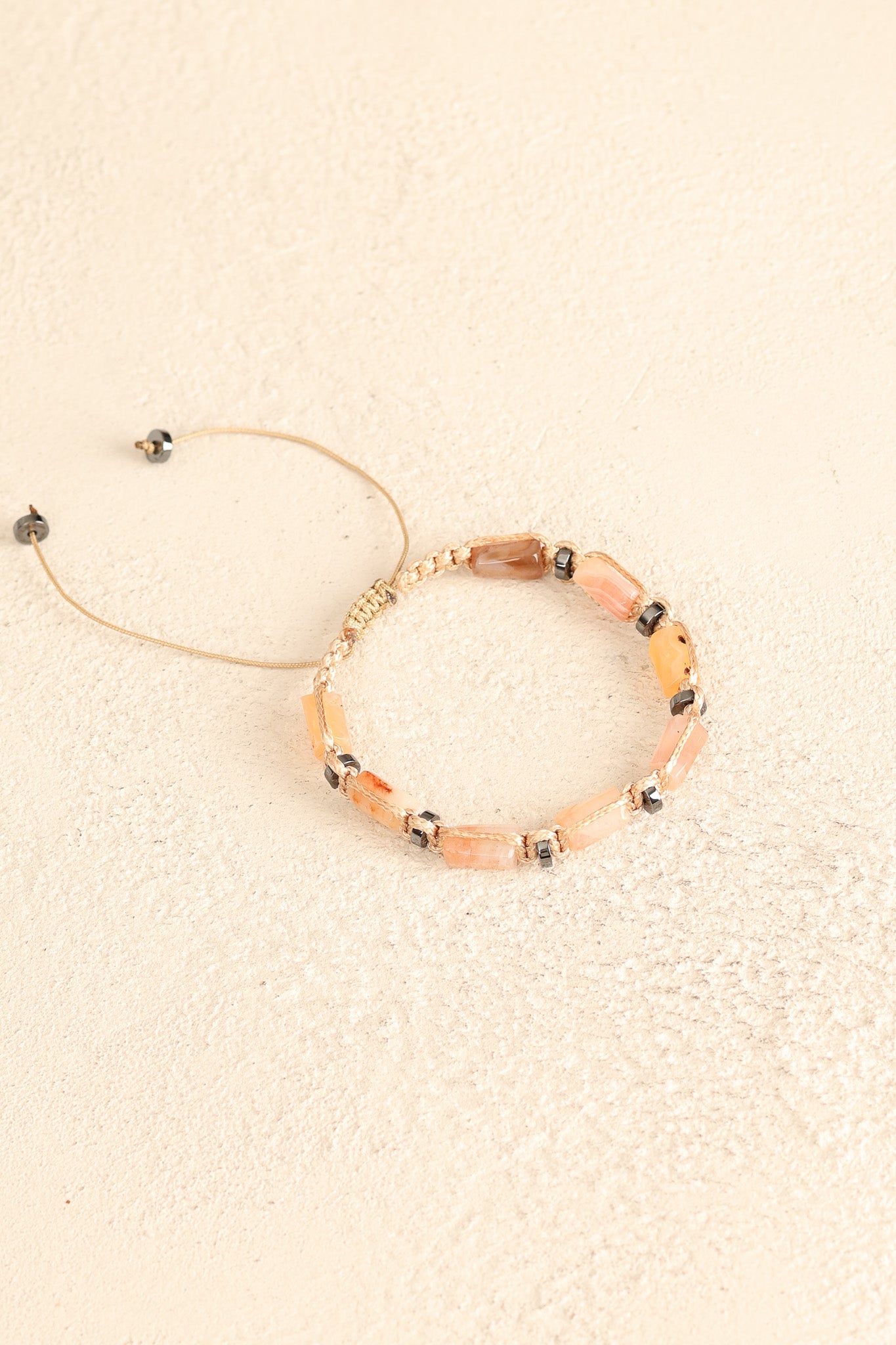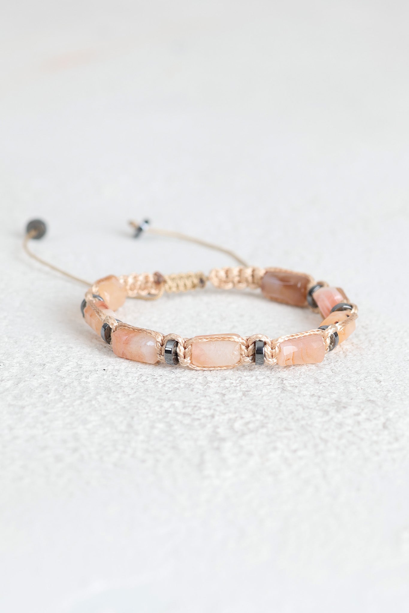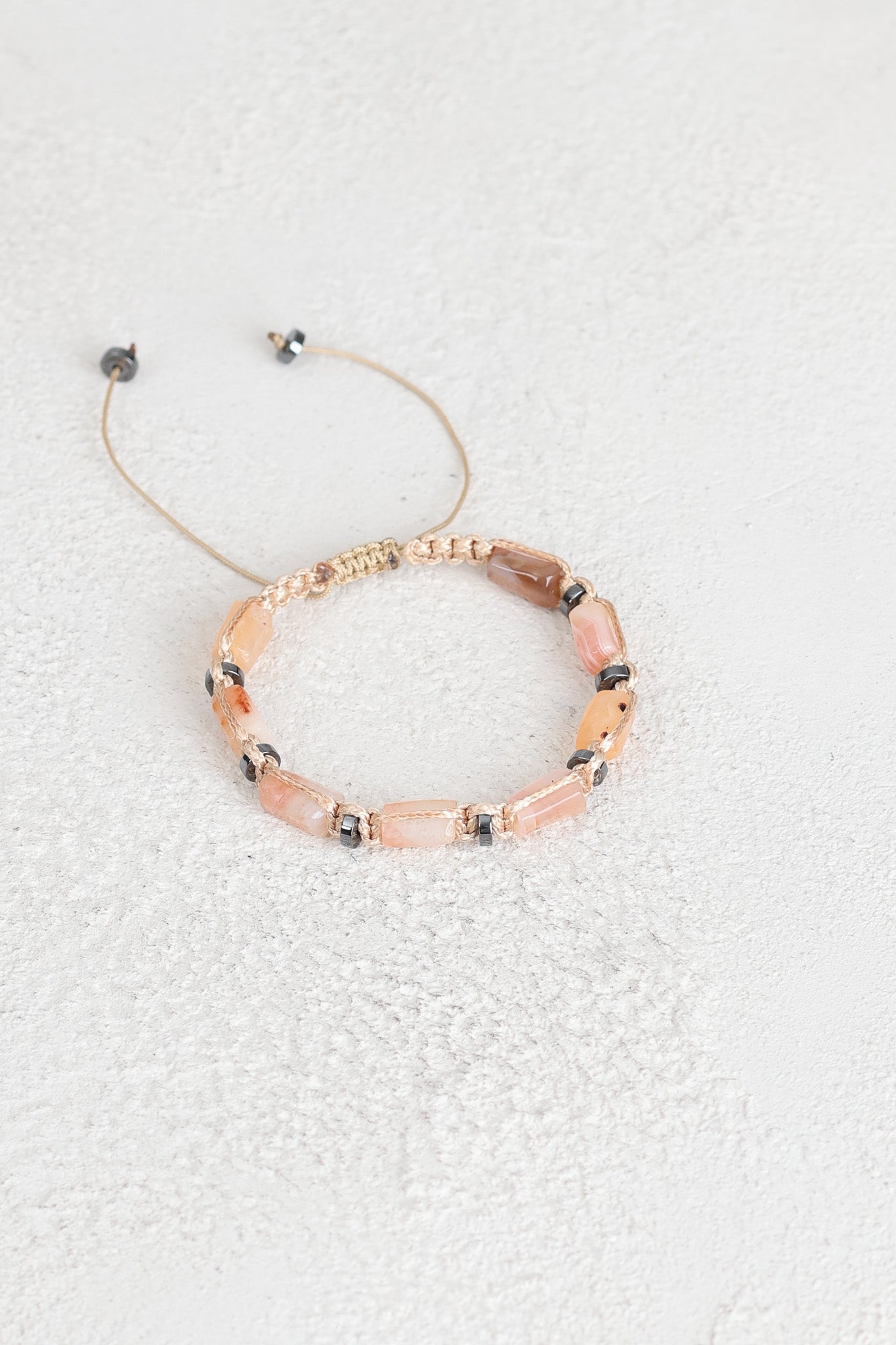 Akik taşının doğal renk geçişleri, bilekliğe her biri birbirinden farklı bir karakter kazandırır. El yapımı makrome örgü, uzun süreli kullanımda formunu korur ve bileğe rahatça uyum sağlar. Doğal taş severler için sade ama etkileyici bir seçimdir.