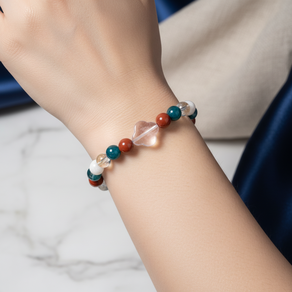Akrep Burcu Doğal Taş Bileklik – Ay Taşı, Jasper, Kristal Kuvars, Mavi Apatit & Sitrin