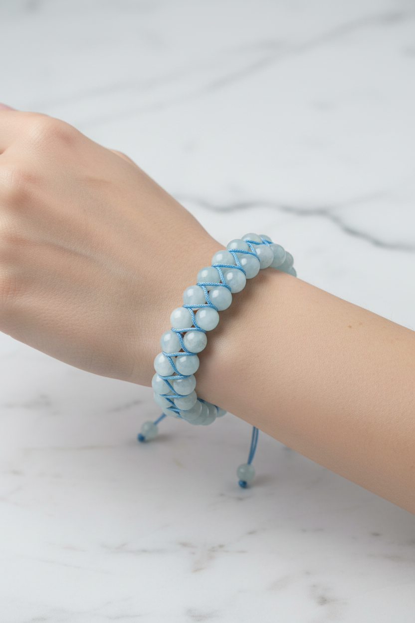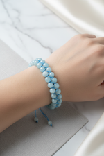 Akuamarin 8mm Çift Sıra Makrome Doğal Taş Bileklik