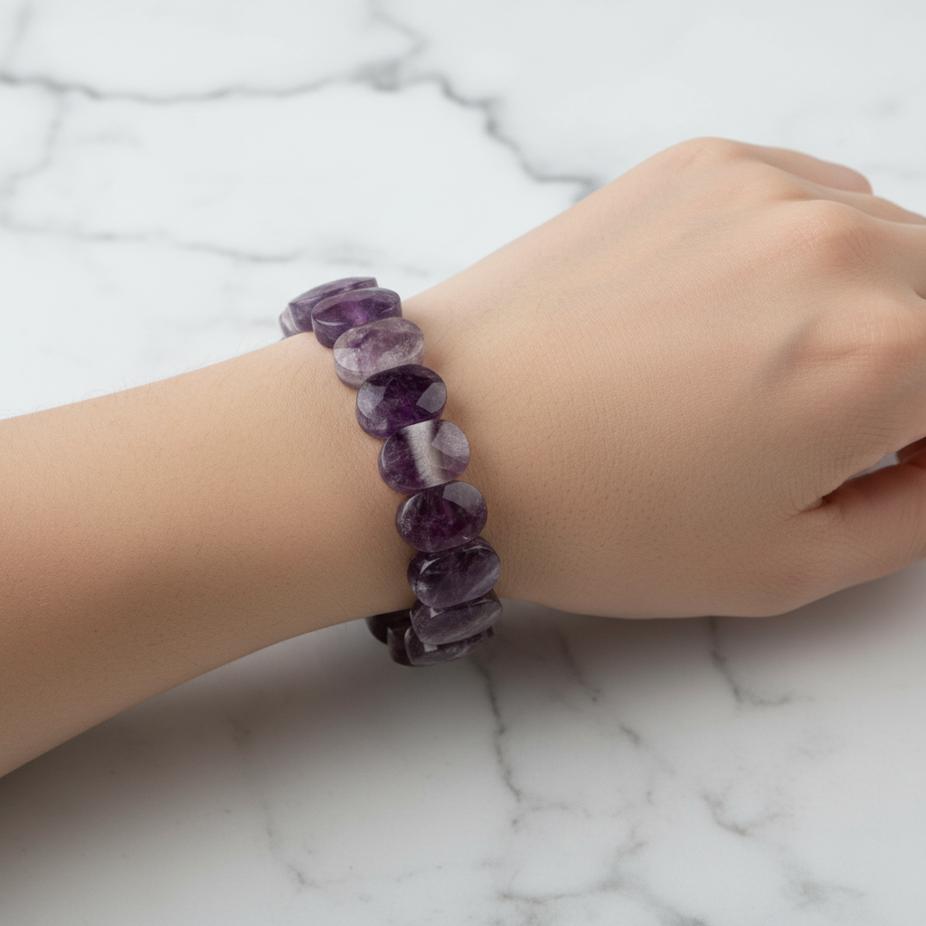 Ametist Doğal Taş Geniş Kesim Bileklik