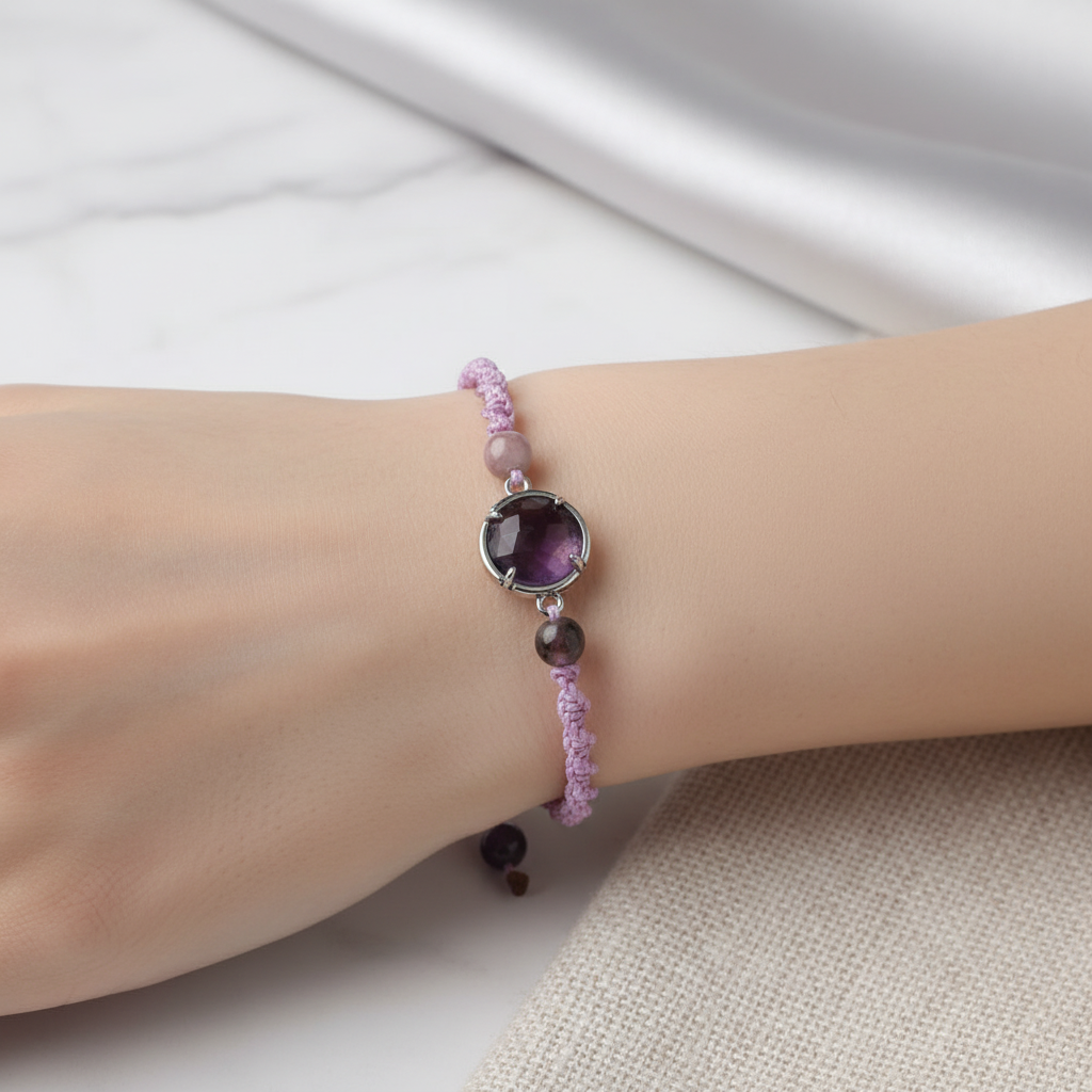 Ametist Doğal Taş Makrome Bileklik – Özel Tasarım