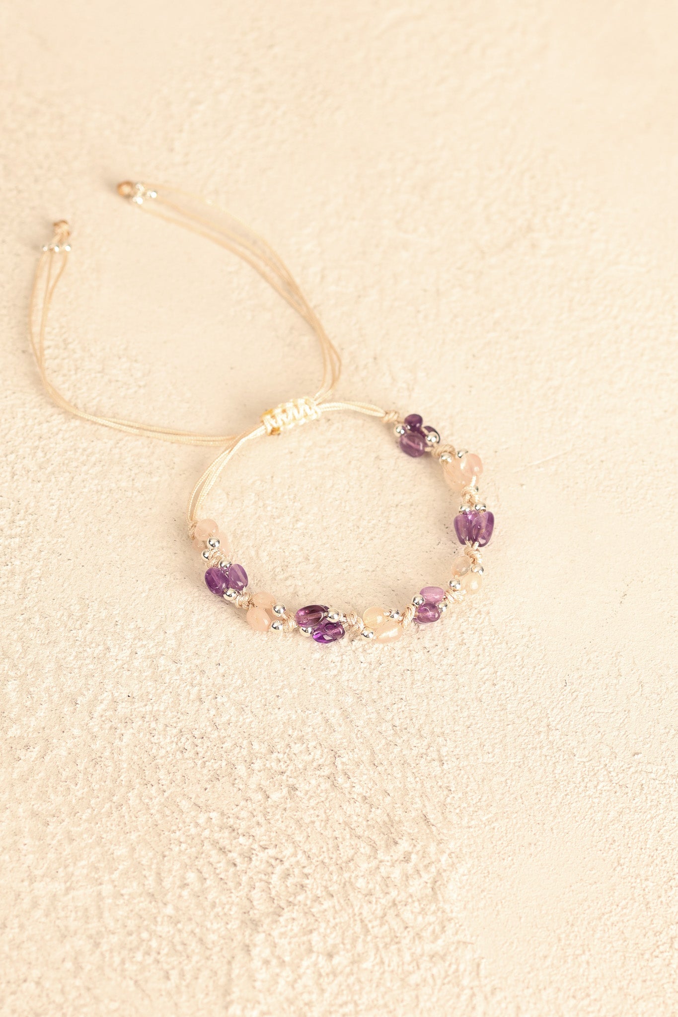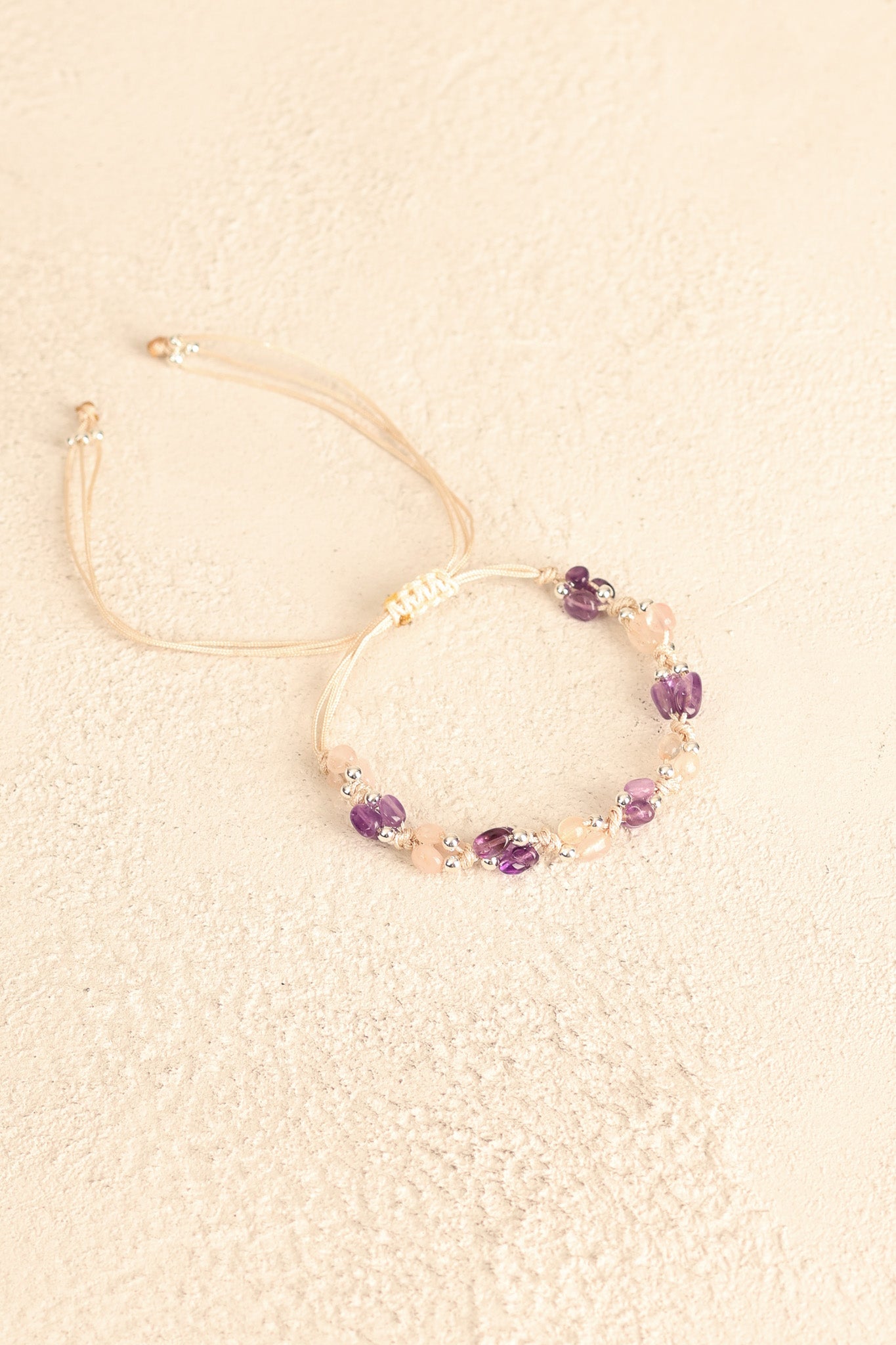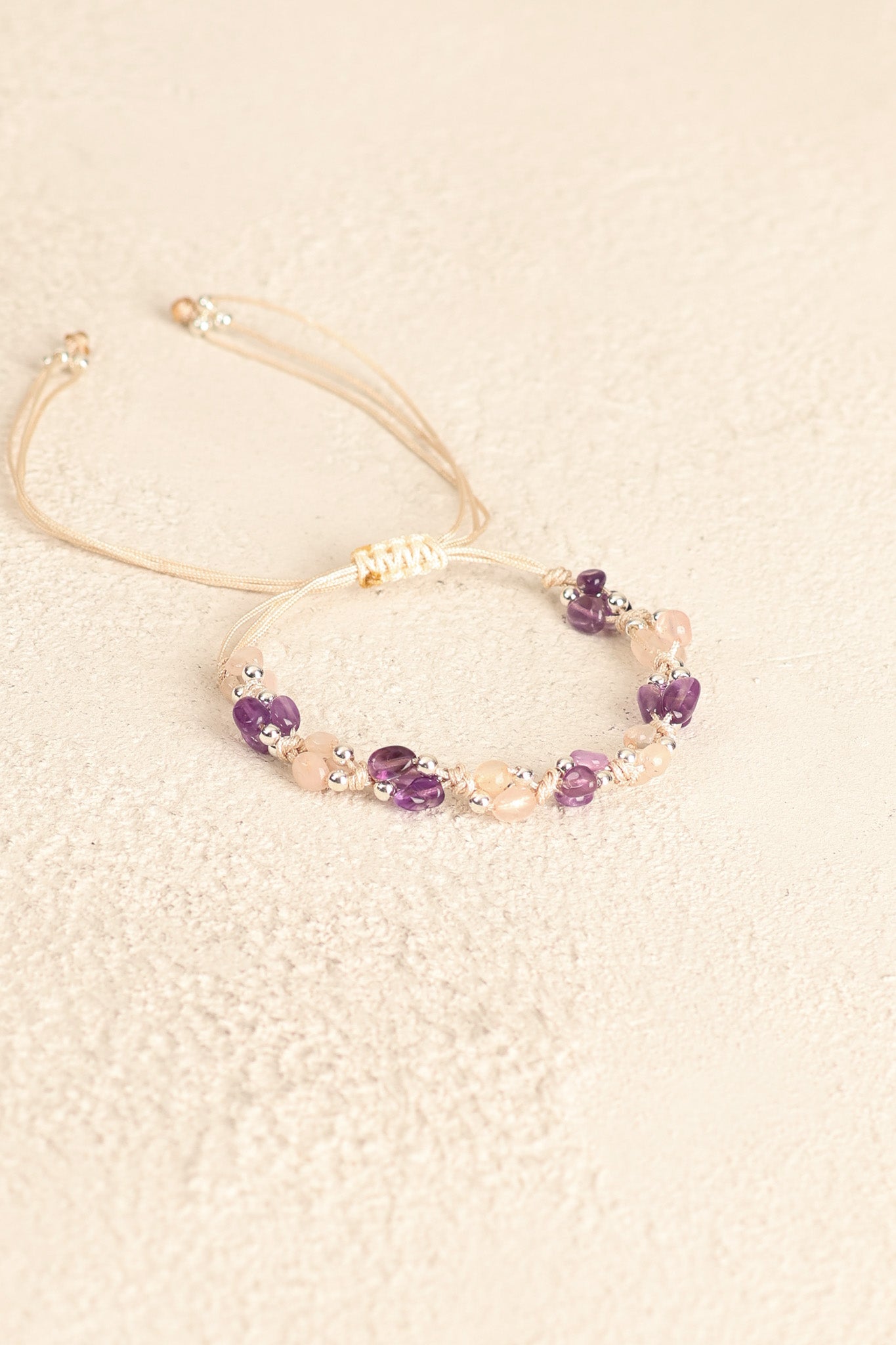 Ametist – Pembe Kuvars Doğal Taş Makrome Bileklik – Pirtash