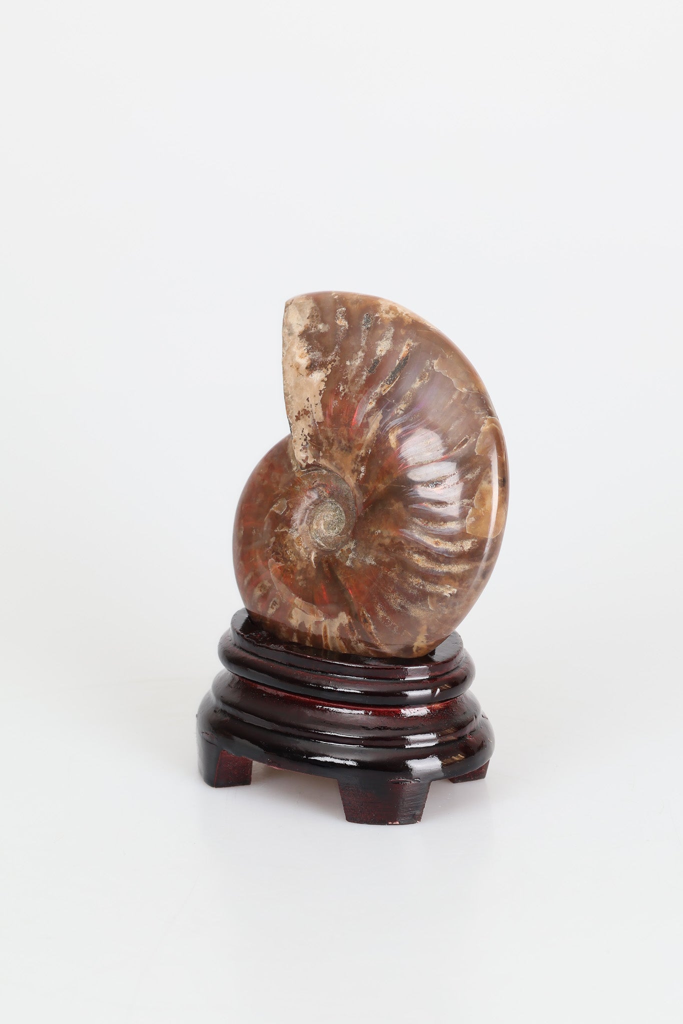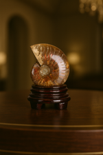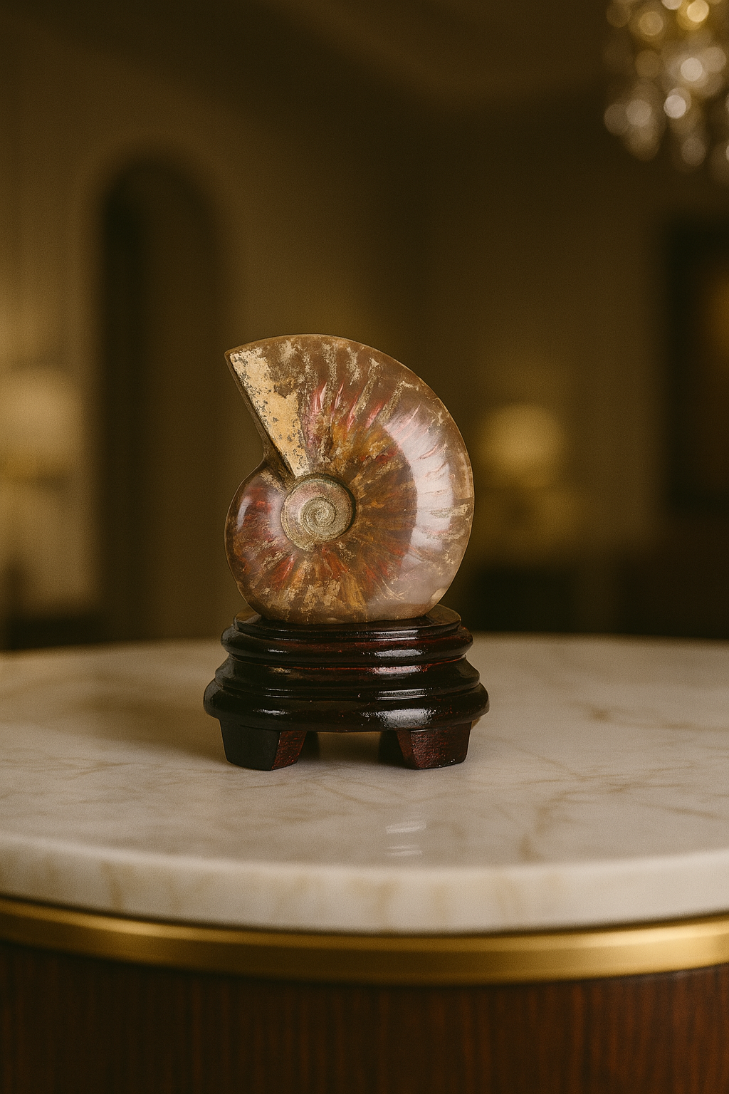 Amonit standlı fosiller, hem doğal tarih ve mineraloji koleksiyonları hem de lüks iç mekan dekorasyonları için nadir ve özel parçalardır. Şık standı sayesinde vitrinlerde, masaüstlerinde veya özel sergileme alanlarında estetik bir şekilde sergilenebilir.