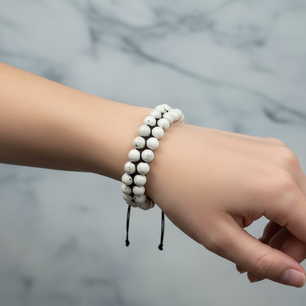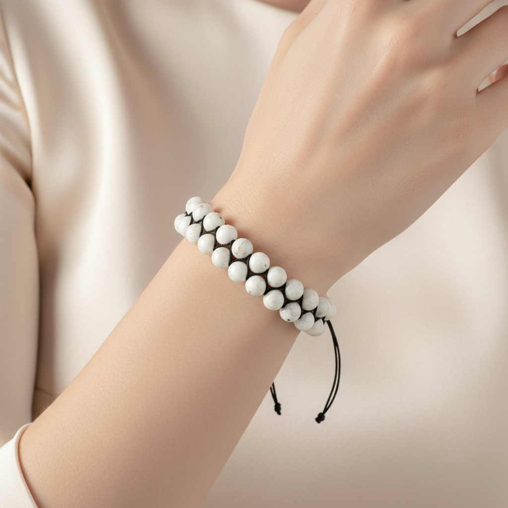 Unisex tasarımı sayesinde hem kadınlar hem de erkekler için uygundur. Ayarlanabilir makrome yapısı bileğe kolay uyum sağlar ve rahat kullanım sunar. Çift sıra dizilimi, bilekte güçlü ve estetik bir duruş oluşturur.