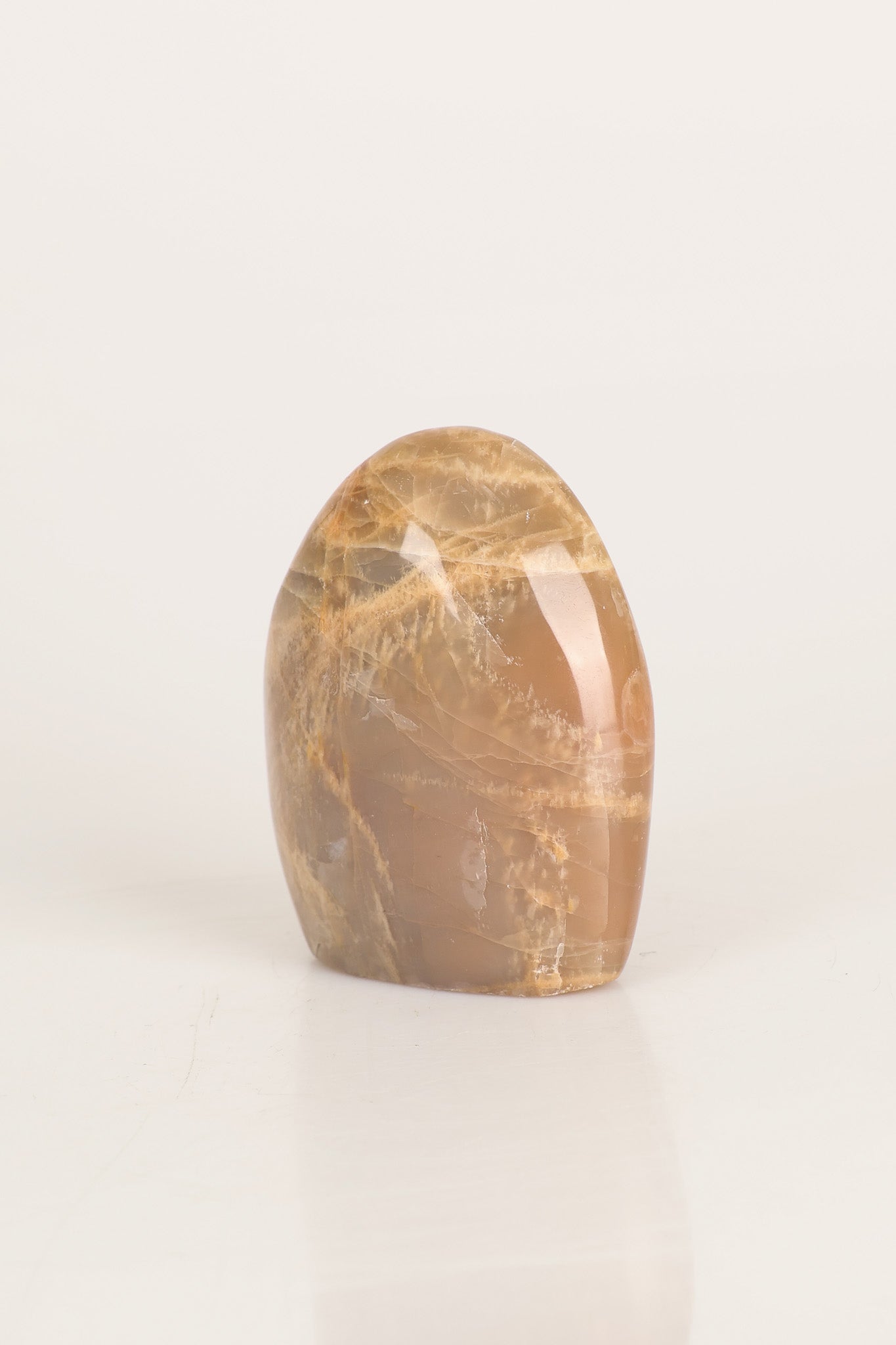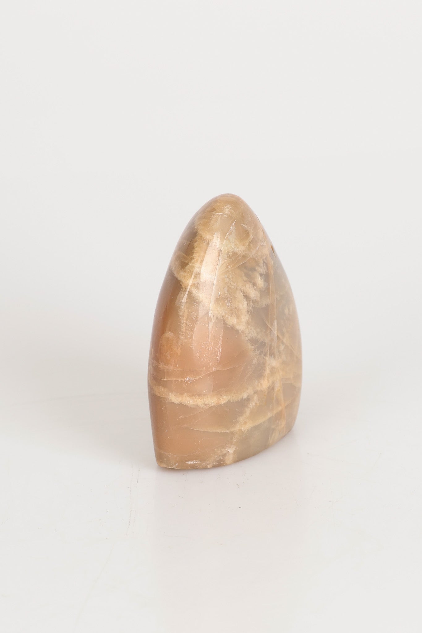 478 gram ağırlığında, 10 cm yüksekliğinde ve 8 cm genişliğinde olan bu Ay Taşı doğal taş ham parça, yumuşak beyaz tonları ve ışığa göre değişen ince parlak yansımalarıyla dikkat çeker. Doğal formu ve pürüzlü yüzey yapısı, onu hem koleksiyonluk hem de dekoratif kullanım için benzersiz kılar.