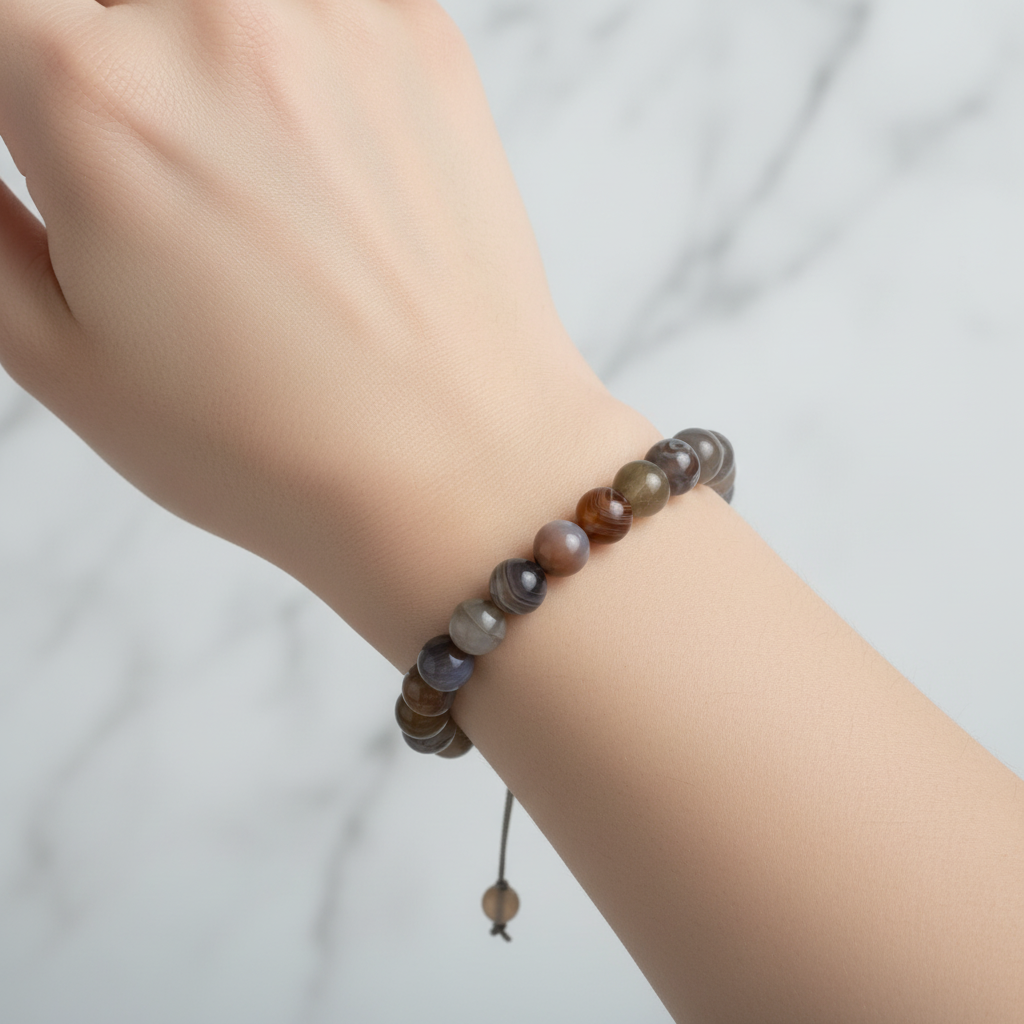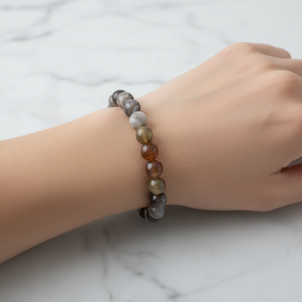 Botswana Akiği 8 mm Merdiven Kapama Doğal Taş Bileklik – El İşçiliği