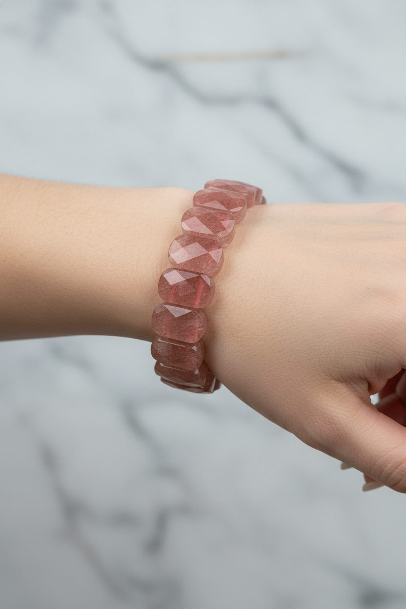Çilek Kuvars Doğal Taş Geniş Kesim Bileklik