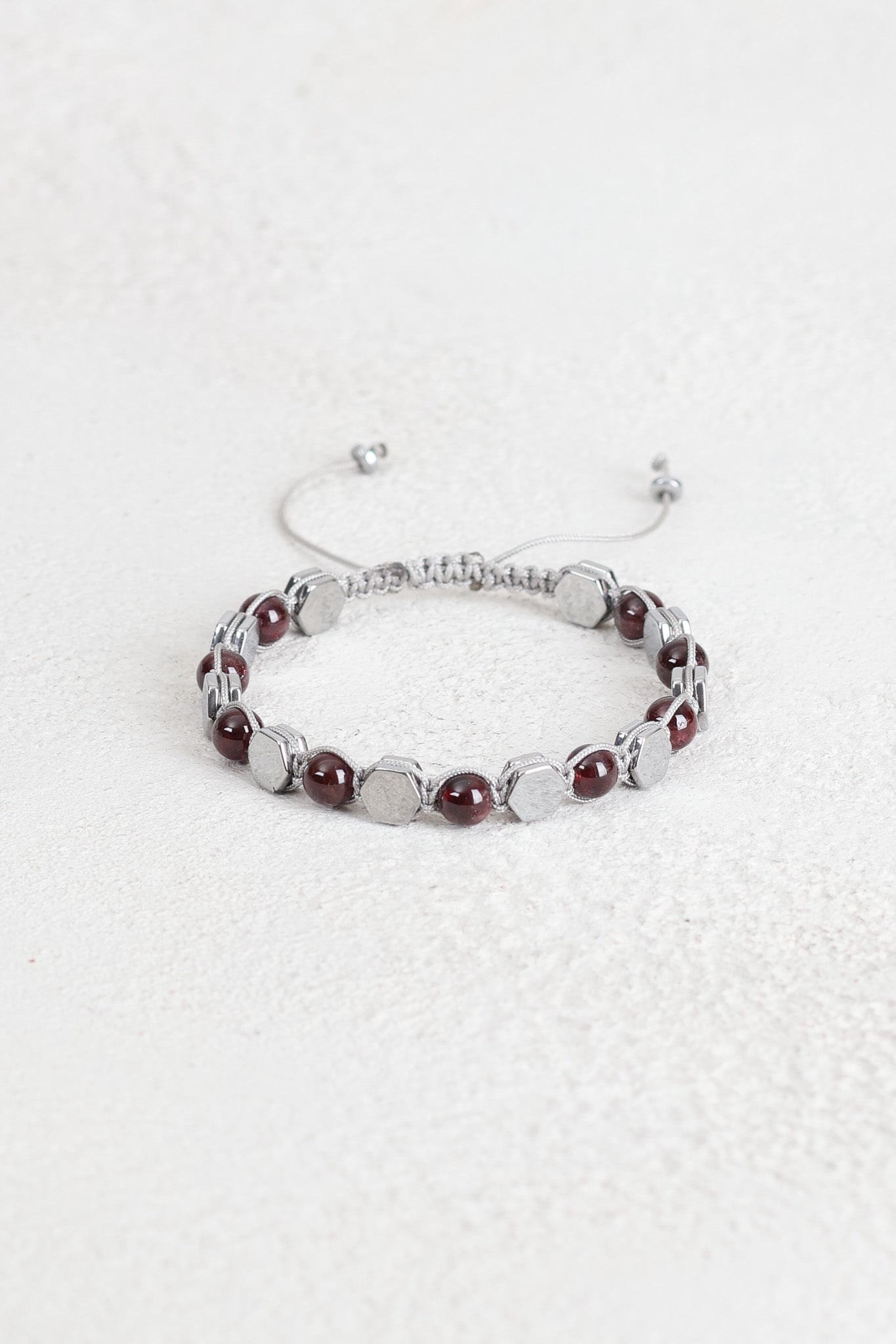 Garnet & Hematit Doğal Taş Makrome Bileklik – Pirtash