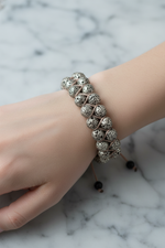 Doğal gözenekli dokusuyla öne çıkan Gri Lav Taşı 8mm Çift Sıra Makrome Doğal Taş Bileklik, modern ve güçlü tasarımıyla bileğinizde dikkat çekici bir duruş sergiler. 8mm çapındaki doğal lav taşı boncuklar çift sıra halinde dizilmiş, el yapımı makrome örgü ile birleştirilmiştir. Günlük kombinlerde sade bir detay, özel davetlerde ise sofistike bir tamamlayıcı aksesuar olarak tercih edilebilir.