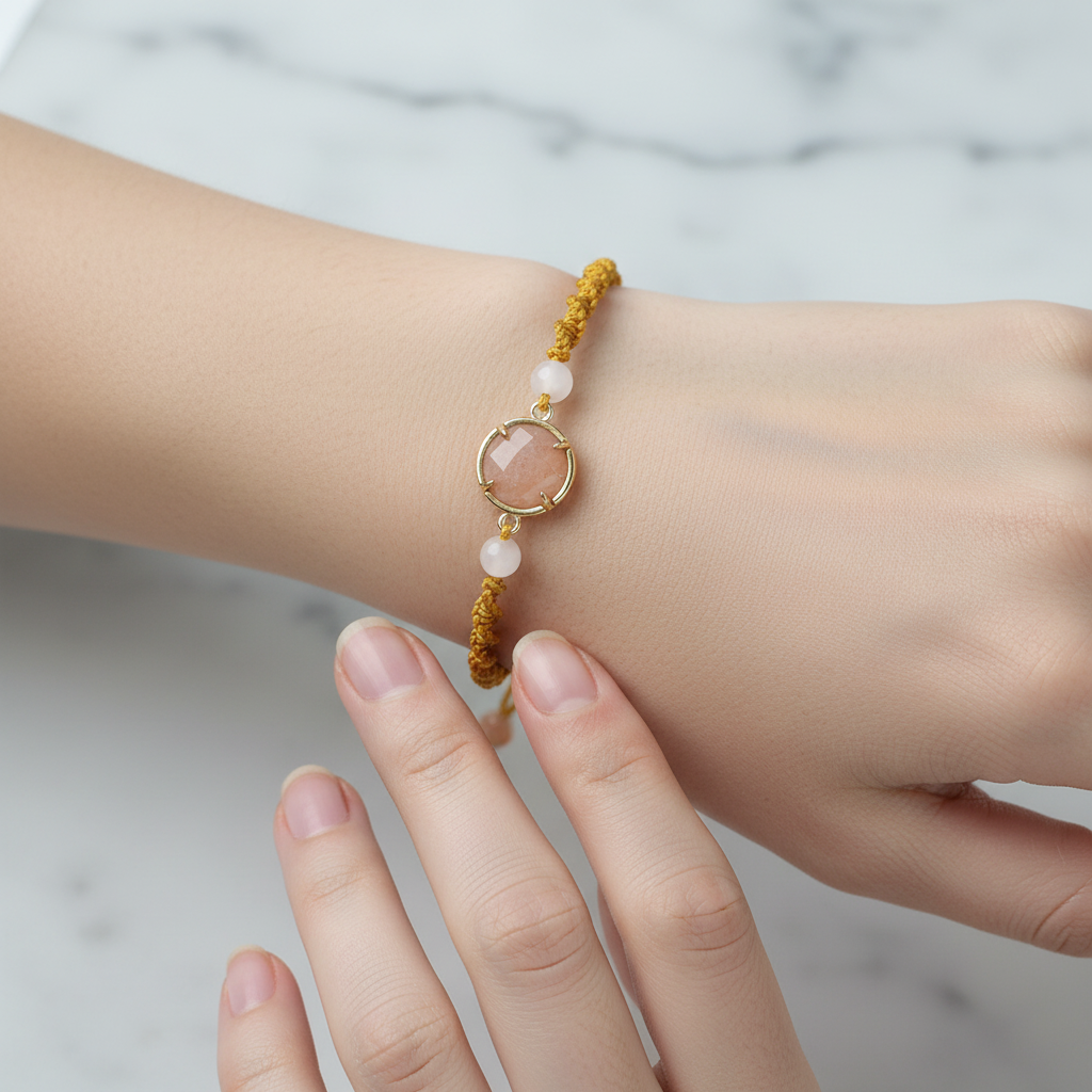 Güneş Taşı – Pembe Kuvars Doğal Taş Makrome Bileklik – Özel Tasarım