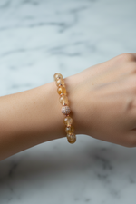 Sitrin ve Hematit Doğal Taş Bileklik – Zirkon Aparatlı, 8 mm Unisex Tasarım