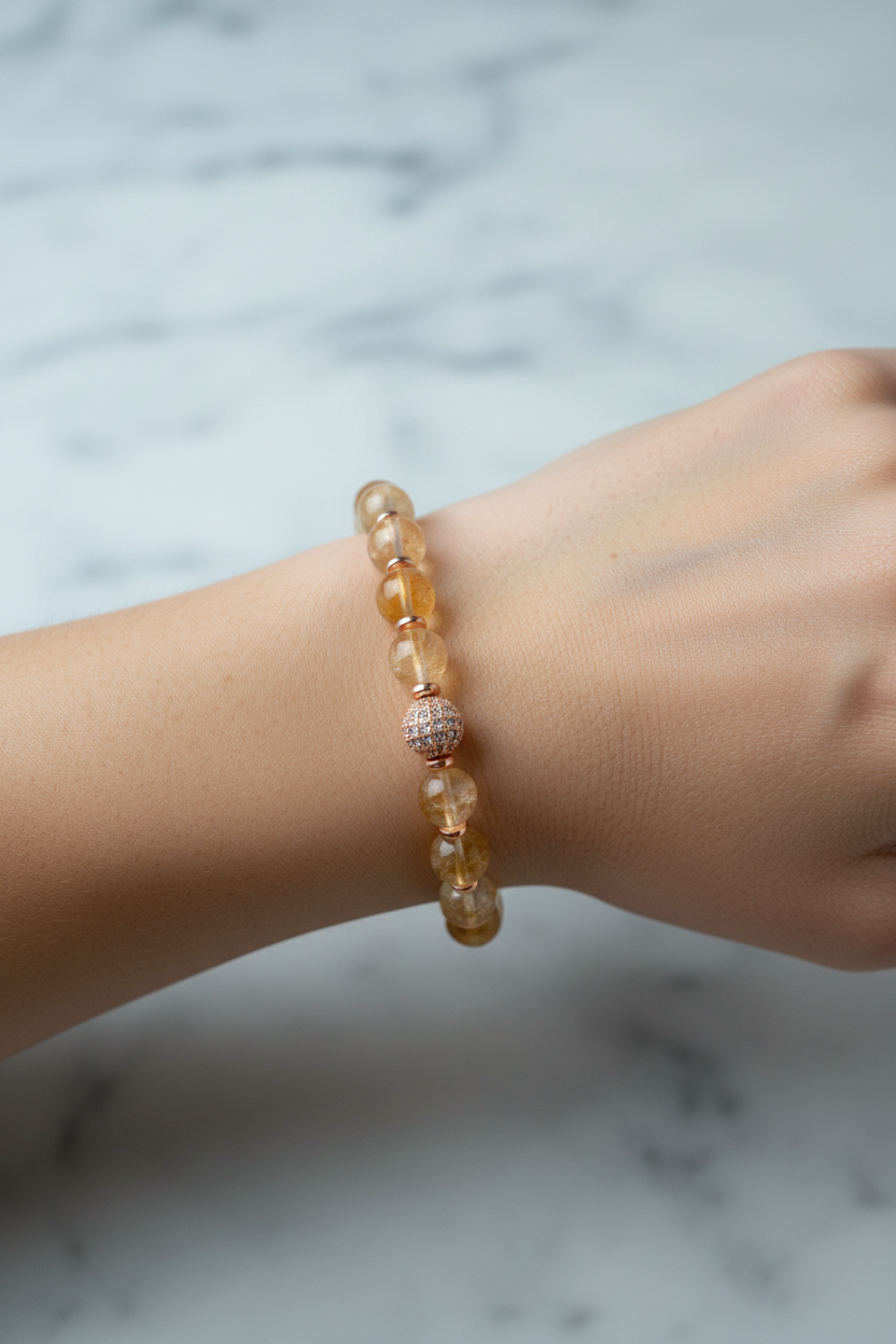 Sitrinin sıcak parıltısını, hematitin güçlü duruşunu ve zirkon detayın sofistike şıklığını buluşturan bu 8 mm doğal taş bileklik; koleksiyonuna modern, zarif ve dikkat çekici bir parça eklemek isteyenler için ideal seçimdir.