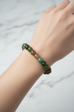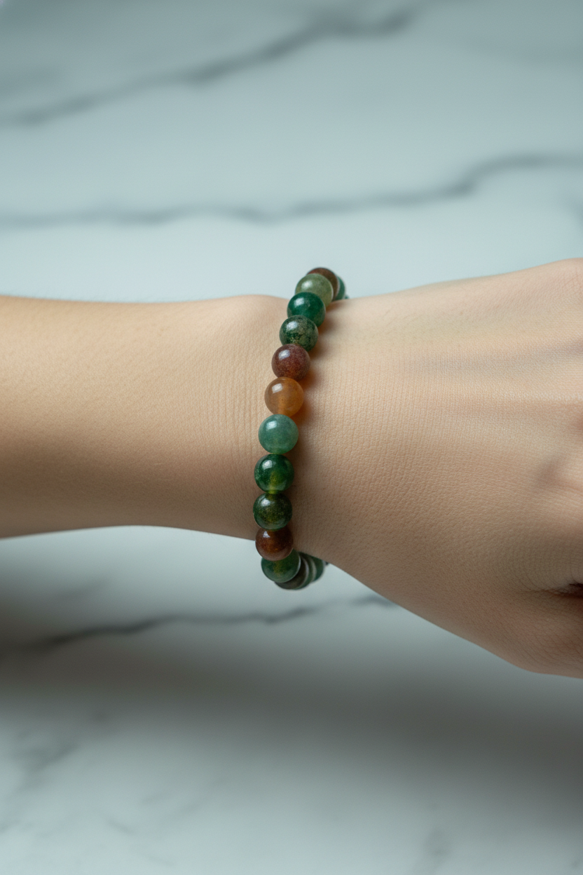 Doğanın farklı renk tonlarını yansıtan Hint Akiği 8mm Doğal Taş Bileklik, özgün desenleri ve modern tasarımıyla öne çıkar. 8mm çapındaki doğal akik taşları, yeşil, kahverengi ve krem tonlarının uyumlu geçişleriyle bilekte estetik bir görünüm sunar. Günlük kombinlerde doğal bir şıklık, özel davetlerde ise sofistike bir tamamlayıcı aksesuar olarak tercih edilebilir.