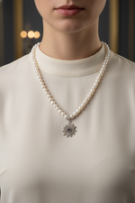 İnci taşının zamansız zarafeti, telkari işçiliğinin ince detaylarıyla birleşerek göz alıcı bir kolye tasarımına dönüşüyor. 925 ayar gümüşten el işçiliğiyle hazırlanan bu özel parça, hem günlük kombinlerde sofistike bir dokunuş hem de özel günlerde şıklığı tamamlayan ayrıcalıklı bir aksesuar sunar. Geleneksel işçiliğin modern bir yorumla buluştuğu tasarım, koleksiyonlarda değerli bir yere sahiptir.