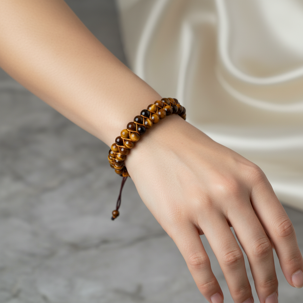Kaplan Gözü 4 mm Çift Sıra Doğal Taş Bileklik – Unisex El İşçiliği