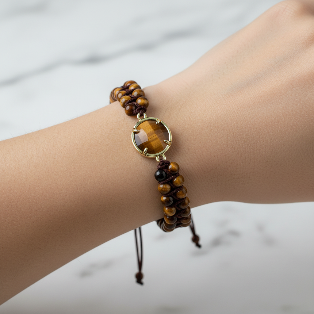 Kaplan Gözü Doğal Taş Makrome Bileklik – Özel Tasarım