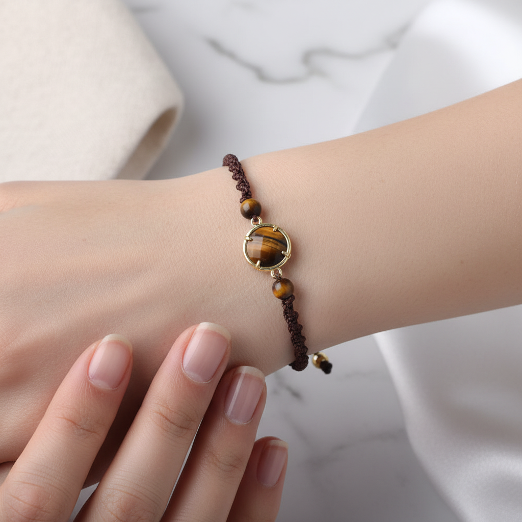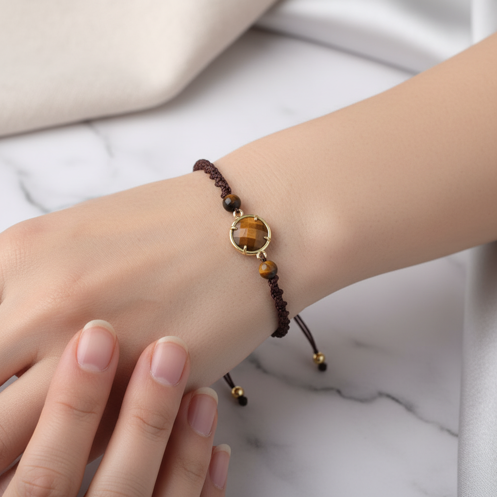 Kaplan Gözü Doğal Taş Makrome Bileklik – Özel Tasarım