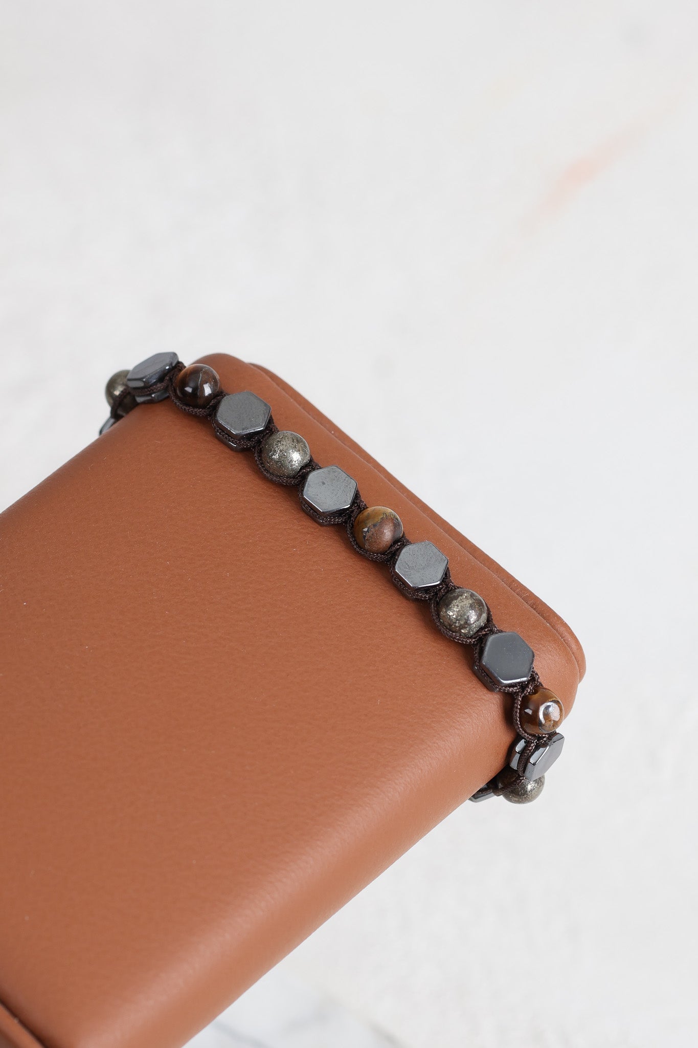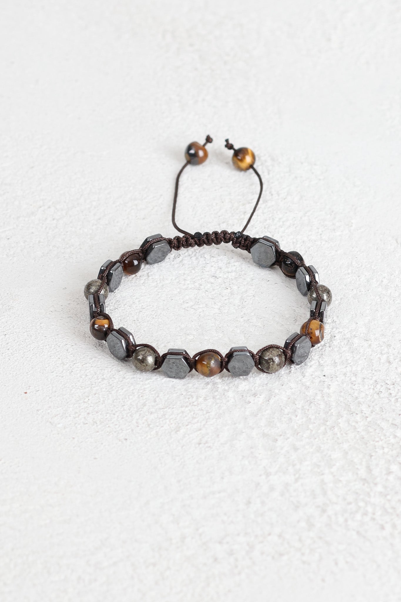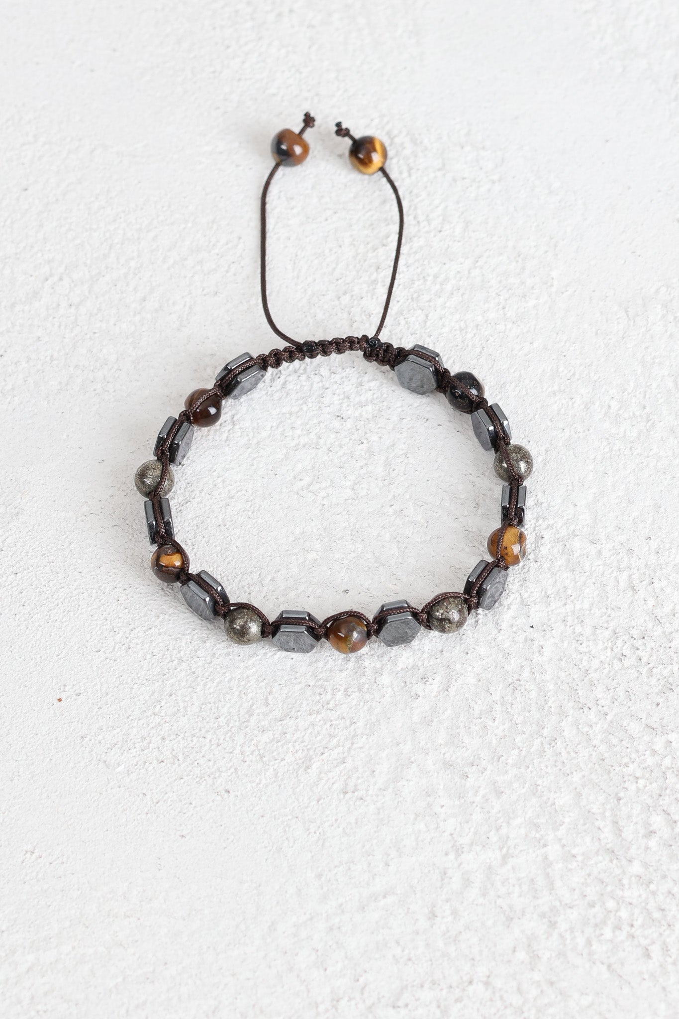 Kaplan Gözü, Hematit & Pirit Doğal Taş Makrome Bileklik – Pirtash