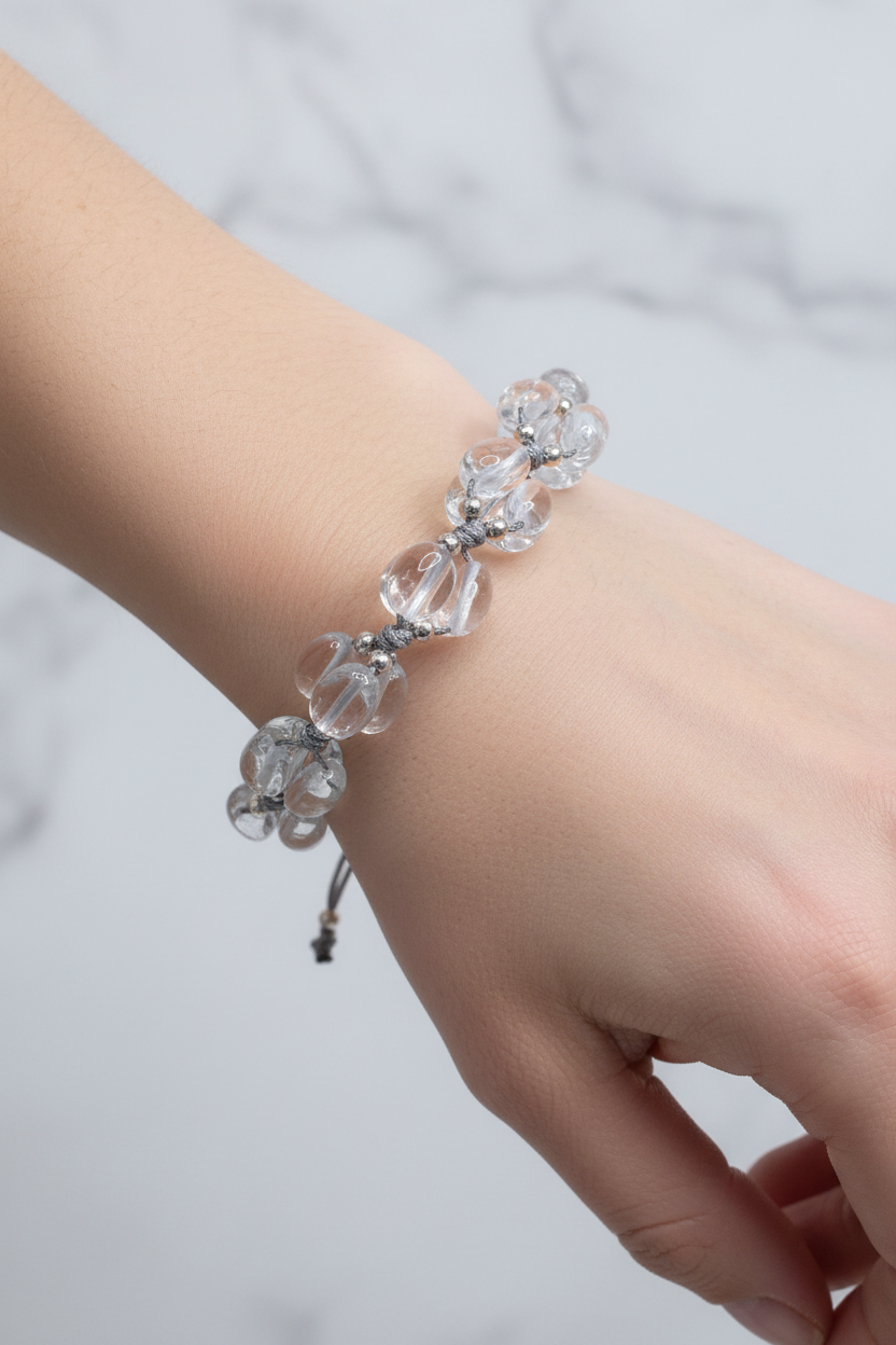 Kristal Kuvars Doğal Taş Merdiven Kapama Bileklik – Naturel Kesim & Ayarlanabilir İpli Tasarım
