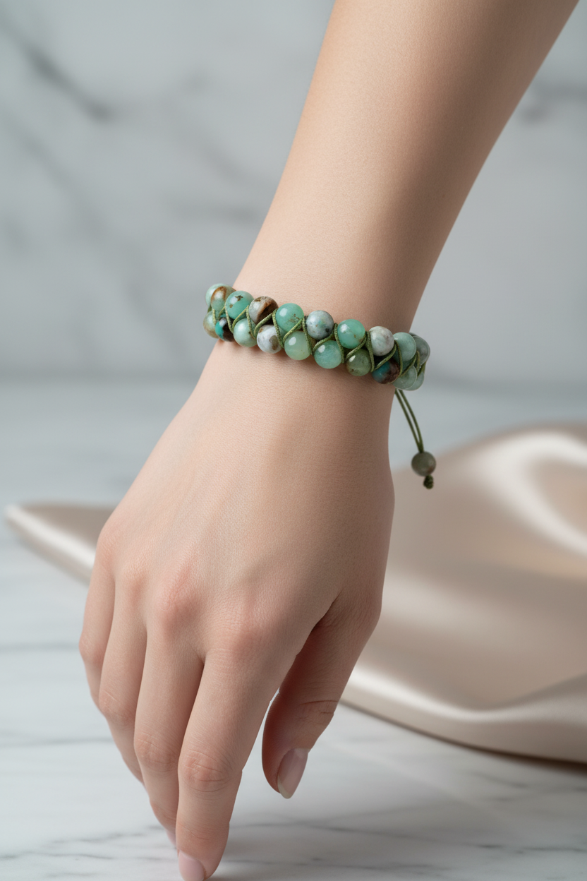 Canlı yeşil tonlarıyla öne çıkan Krizopras 8mm Çift Sıra Makrome Doğal Taş Bileklik, zarif ve modern tasarımıyla bileğinizde dikkat çekici bir şıklık sunar. 8mm çapındaki doğal krizopras taşları çift sıra halinde dizilmiş, el yapımı makrome örgü ile hazırlanmıştır. Günlük kombinlerde doğal bir tazelik katarken, özel davetlerde de sofistike bir tamamlayıcı aksesuar olarak öne çıkar.