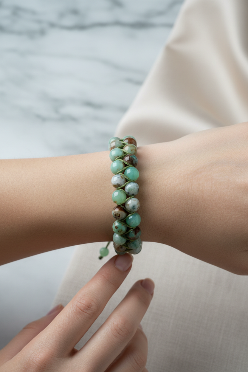 Krizopras 8mm Çift Sıra Makrome Doğal Taş Bileklik