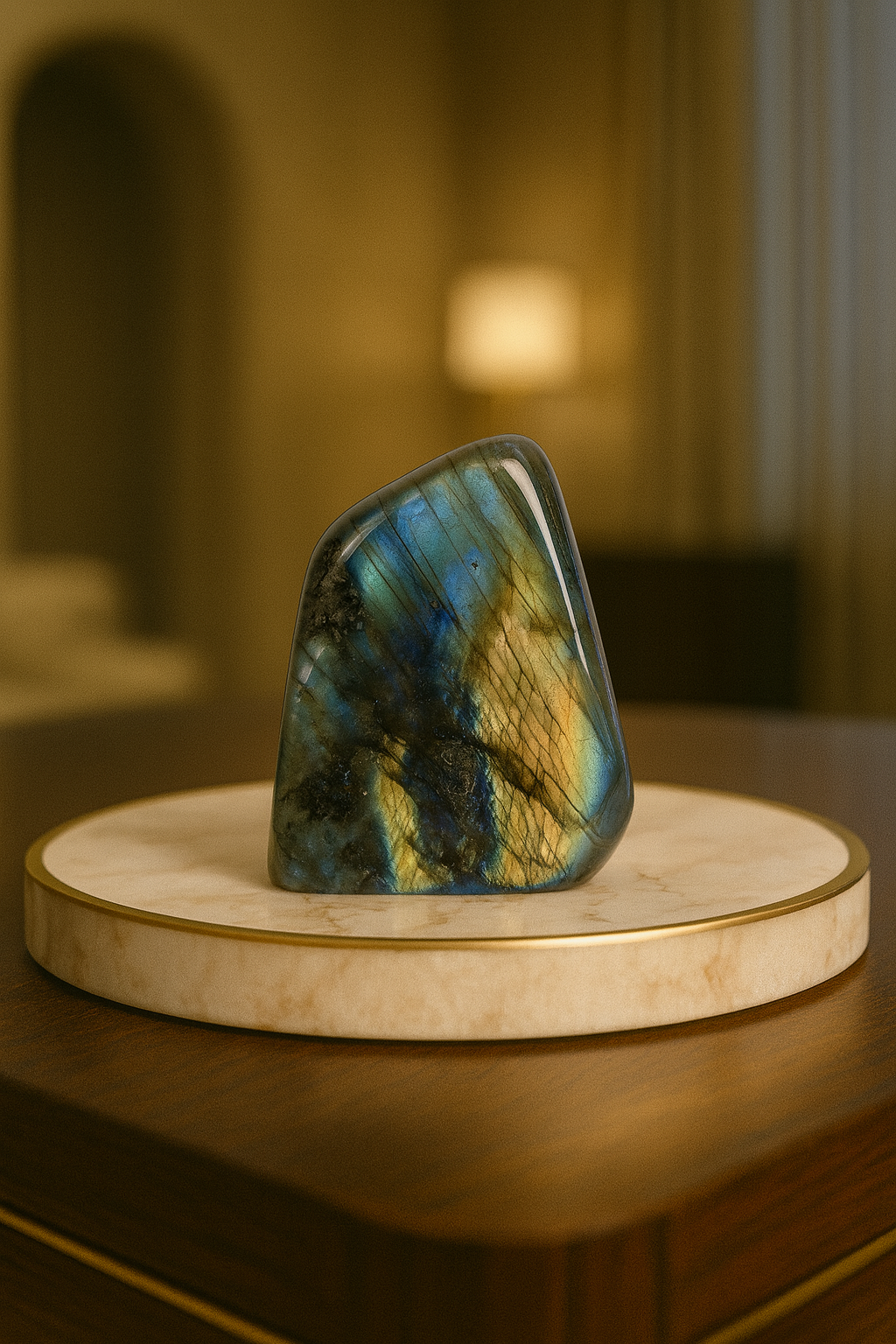 Labradorit taşı, nadir ışık oyunları ve doğal güzelliğiyle lüks iç mekan dekorasyonları, doğal taş koleksiyonları ve mineraloji tutkunları için mükemmel bir seçimdir. Sergilendiği her ortamda sofistike ve etkileyici bir görünüm sağlar.