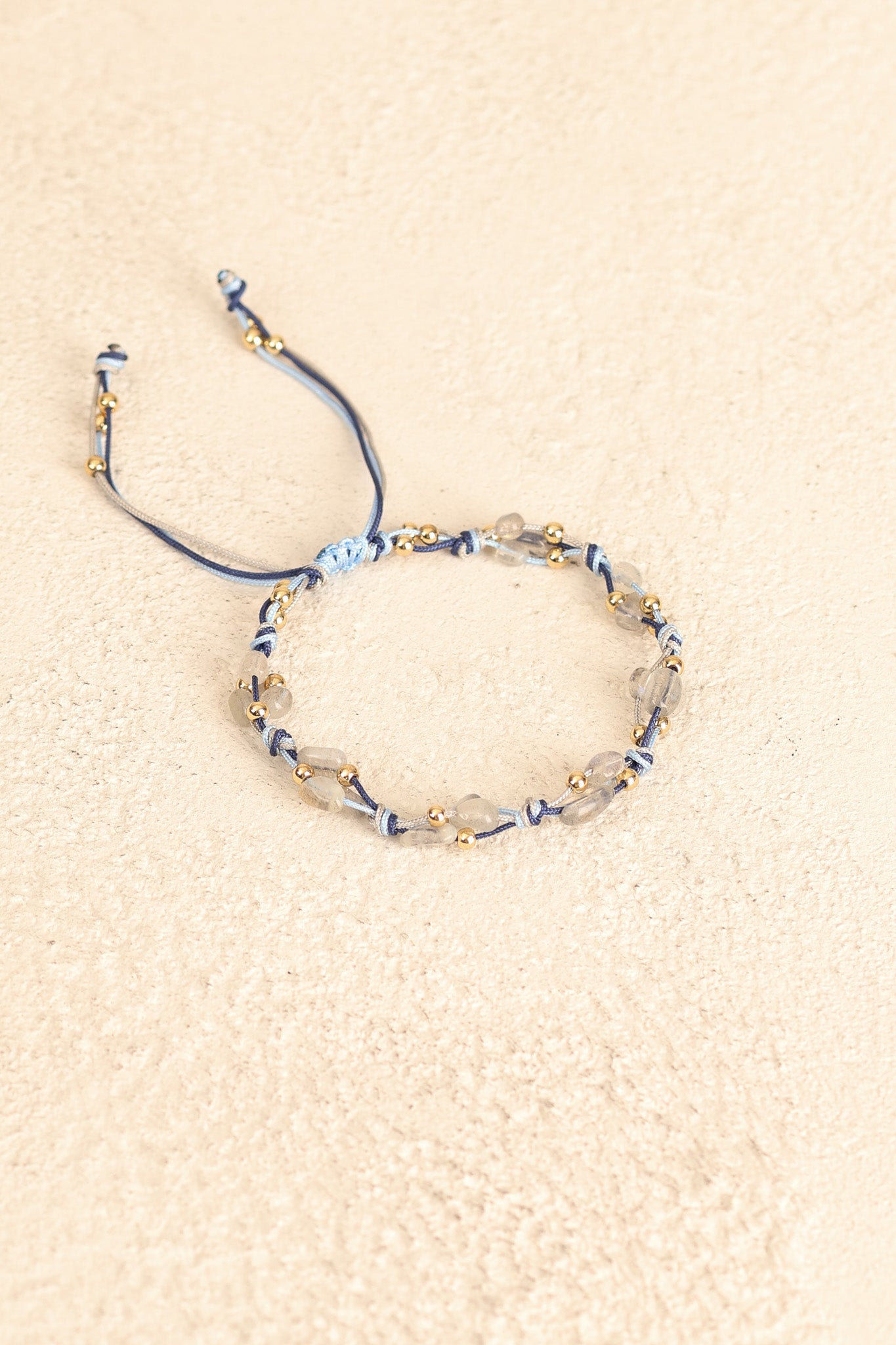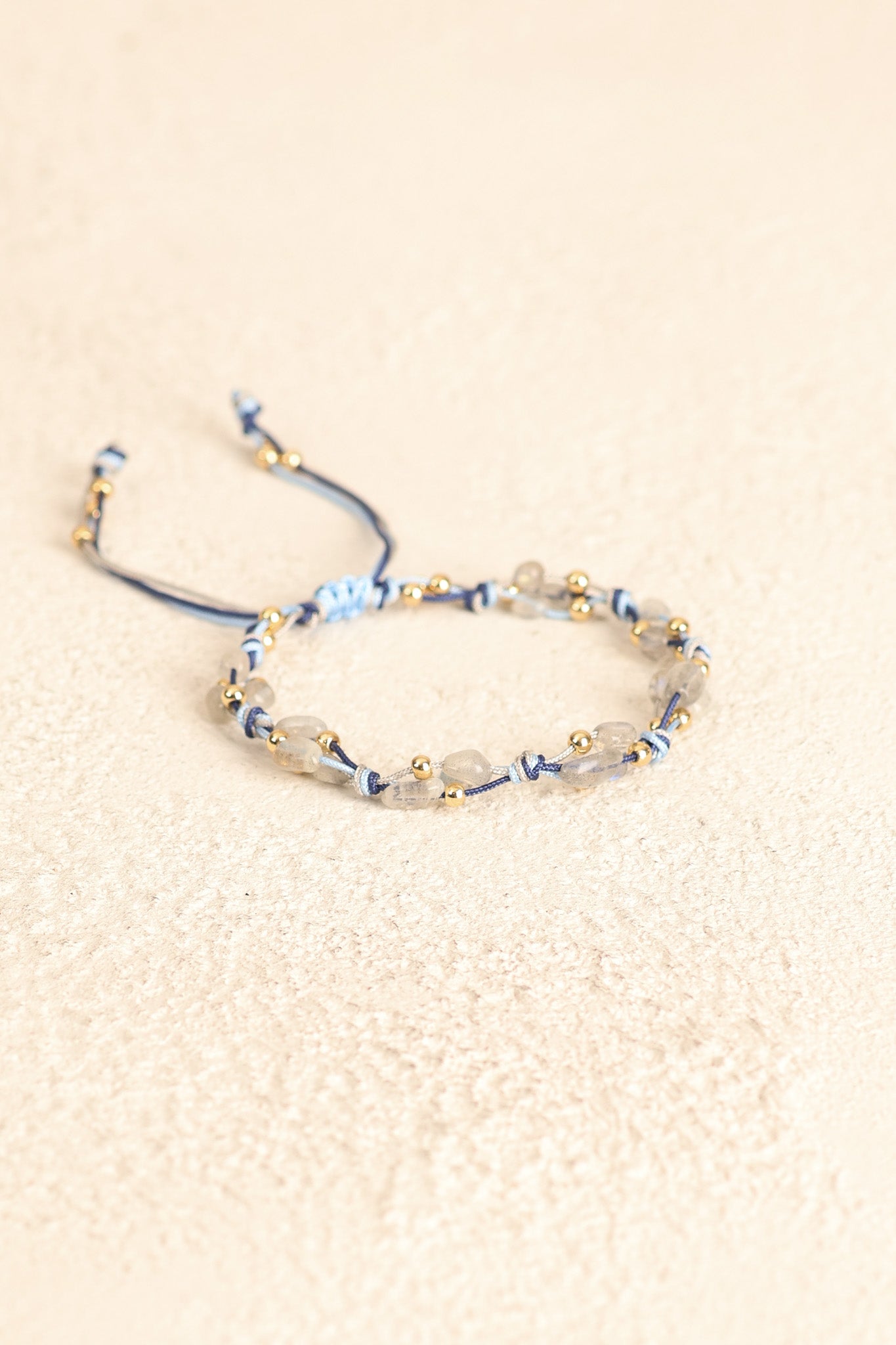 Doğanın gizemli renk oyunlarını yansıtan Labradorit taşı, her hareketle ışığa göre değişen mavi-yeşil parıltılarıyla dikkat çeker. El işçiliğiyle örülen dayanıklı makrome örgüsü, sade ama karakterli bir tasarım sunar. Ayarlanabilir yapısı sayesinde her bileğe rahatça uyum sağlar. Modern, minimalist ve zamansız duruşuyla hem günlük kombinlerde hem de özel günlerde şık bir tamamlayıcıdır.