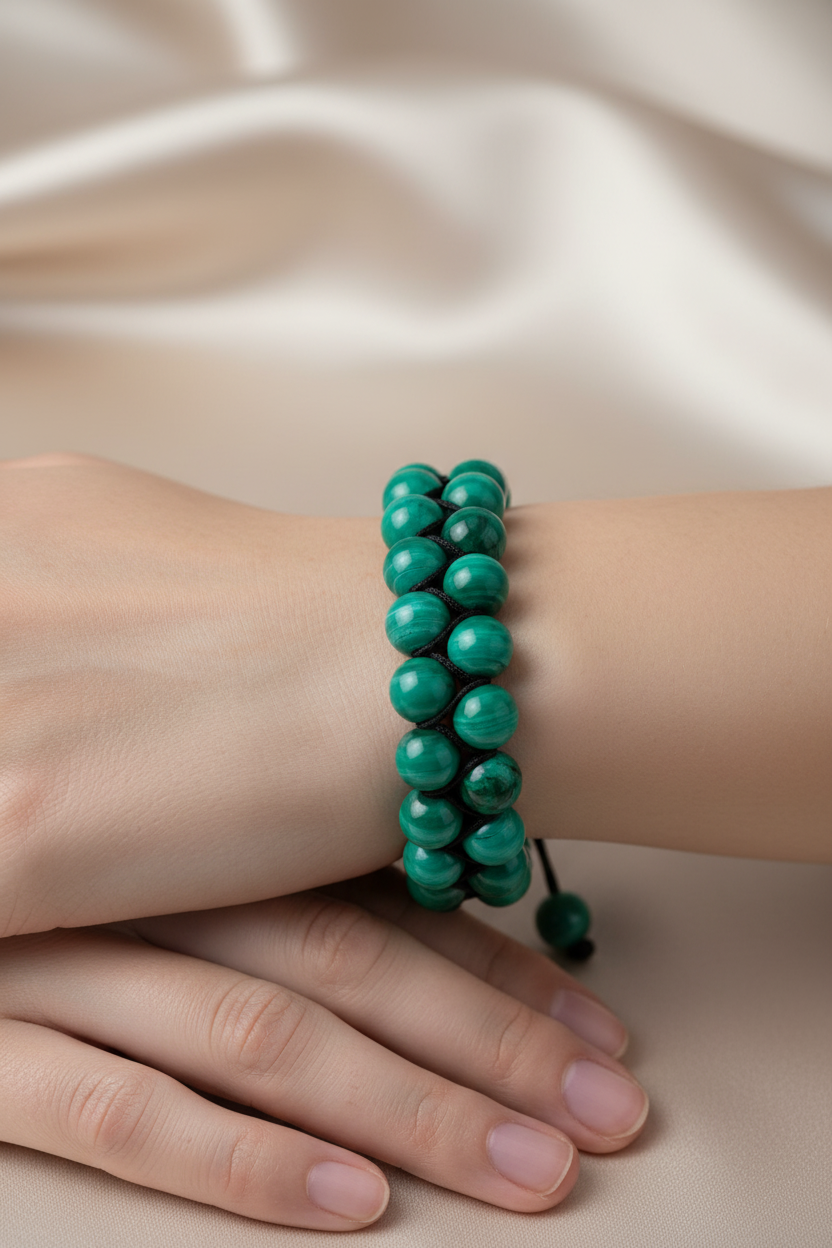 Malakit 8mm Çift Sıra Makrome Doğal Taş Bileklik