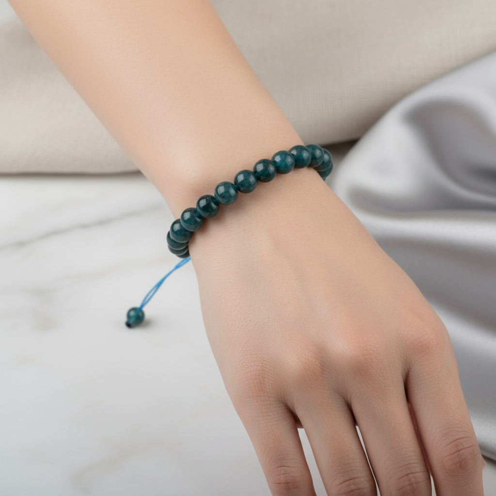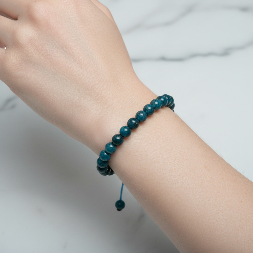 Mavi Apatit 8 mm Merdiven Kapama Doğal Taş Bileklik – El İşçiliği