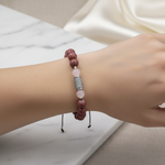 Rodonit & Pembe Kuvars Doğal Taş Zirkon Bileklik – Özel Tasarım