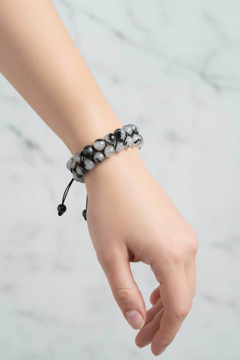 Unisex tasarımı sayesinde hem kadınlar hem de erkekler için uygundur. Ayarlanabilir makrome yapısı, bileğe kolay uyum sağlar ve konforlu kullanım imkânı sunar. Çift sıra dizilimi, bilekte güçlü ve estetik bir görünüm kazandırır.