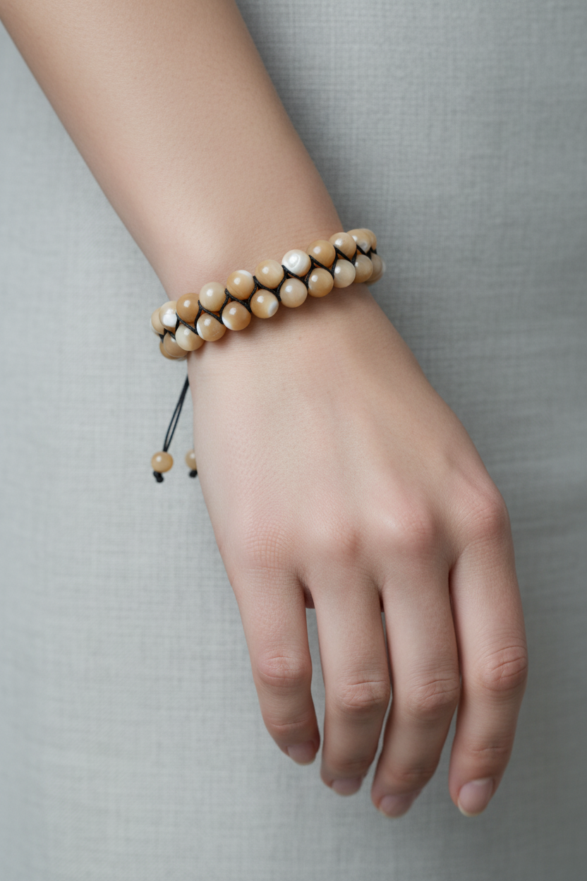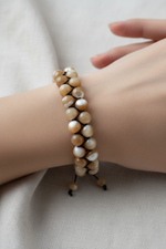 Sedef 8mm Çift Sıra Makrome Doğal Taş Bileklik