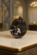 565 gram ağırlığında, 10 cm yüksekliğinde ve 7 cm genişliğinde olan bu Septeryan doğal taş yumurta, eşsiz desenleri ve renk kontrastlarıyla dikkat çeker. Doğal oluşum sürecinde ortaya çıkan sarı, kahverengi ve gri tonlarındaki benzersiz damar yapısı, her açıdan farklı bir görsel zenginlik sunar.