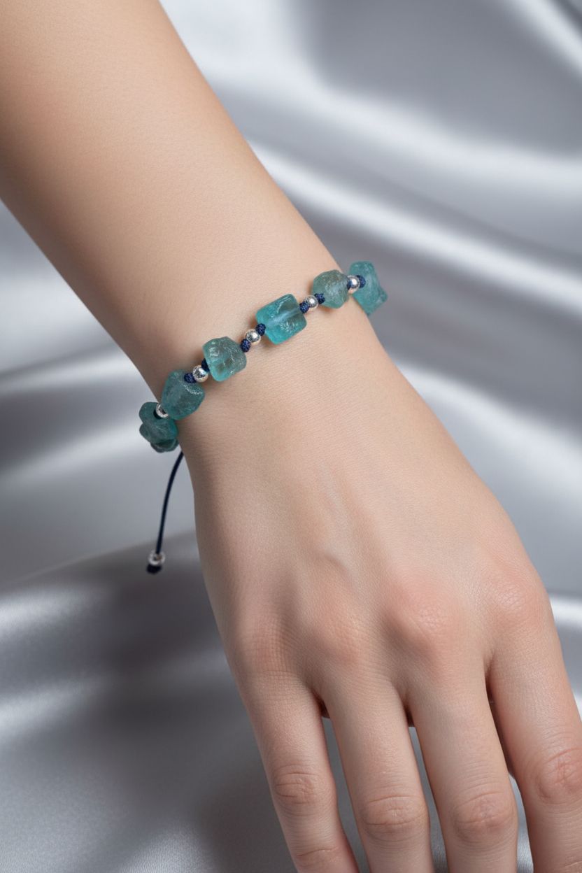 Apatit taşının göz alıcı mavi tonları ile hematitin metalik gri parlaklığı bu bileklikte güçlü bir uyum sergiliyor. El işçiliğiyle örülen makrome tasarım bileğe rahatlıkla oturur ve ayarlanabilir yapısı sayesinde farklı bilek ölçülerine kolayca uyum sağlar. Günlük kullanımda doğal bir şıklık, özel günlerde ise sofistike bir tamamlayıcı aksesuar sunar.