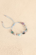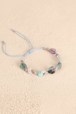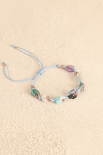 Balık burcunun ruhsal derinliğine, sezgisel gücüne ve duygusal inceliğine uyumlu olarak seçilen bu özel bileklik; akuamarin, ametist, ay taşı, kiyanit, mavi apatit, mor florit ve yeşil larimar taşlarından oluşur. Her biri 6–8 mm arası doğal taşlarla hazırlanmış ve özel makrome örgü ile tamamlanmıştır.