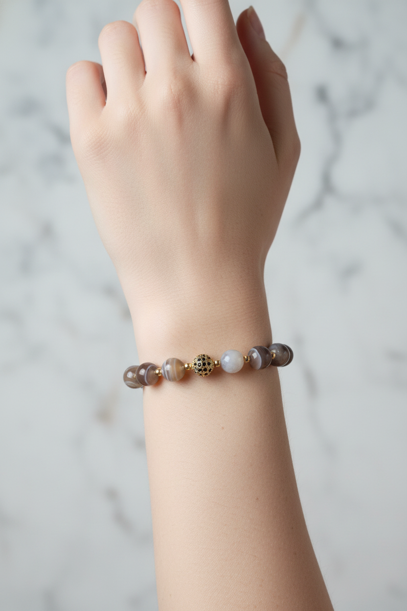 Botswana Akik Doğal Taş Bileklik – Zirkon Aparatlı, Unisex Şık Tasarım
