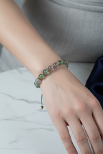 Florit taşının ışığa göre değişen mor, yeşil ve mavi tonları bu bileklikte büyüleyici bir uyum sunuyor. Doğal taşın eşsiz renk geçişleri, günlük kombinlerde zarif bir şıklık, özel günlerde ise sofistike bir tamamlayıcı görünüm kazandırıyor.