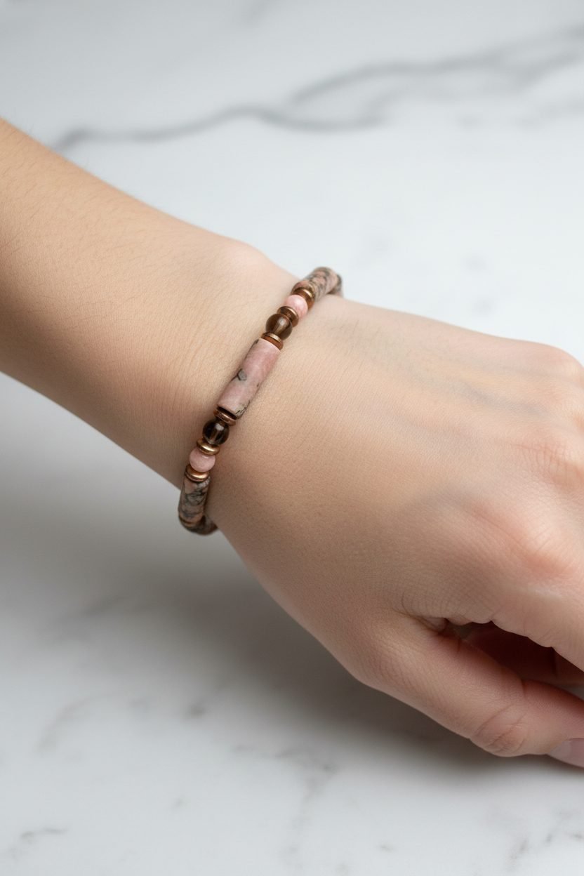 Rodonit – Rodokrosit – Hematit Doğal Taş Bileklik – Özel Tasarım