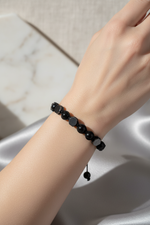 Hematit & Şungit Doğal Taş Makrome Bileklik – Ayarlanabilir Tasarım
