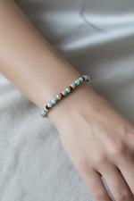 İnci Kaplan Gözü Turkuaz Gümüş Kapama Doğal Taş Bileklik