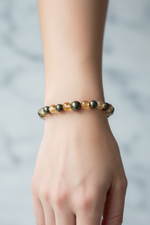 Sitrin ve Pirit Doğal Taş Bileklik – 6 mm Misinalı, Unisex Tasarım