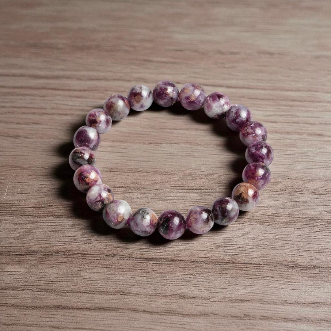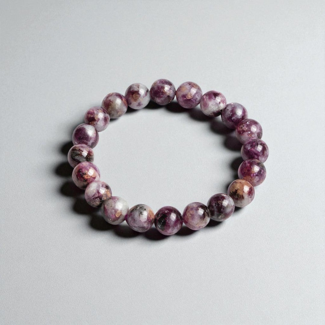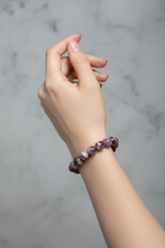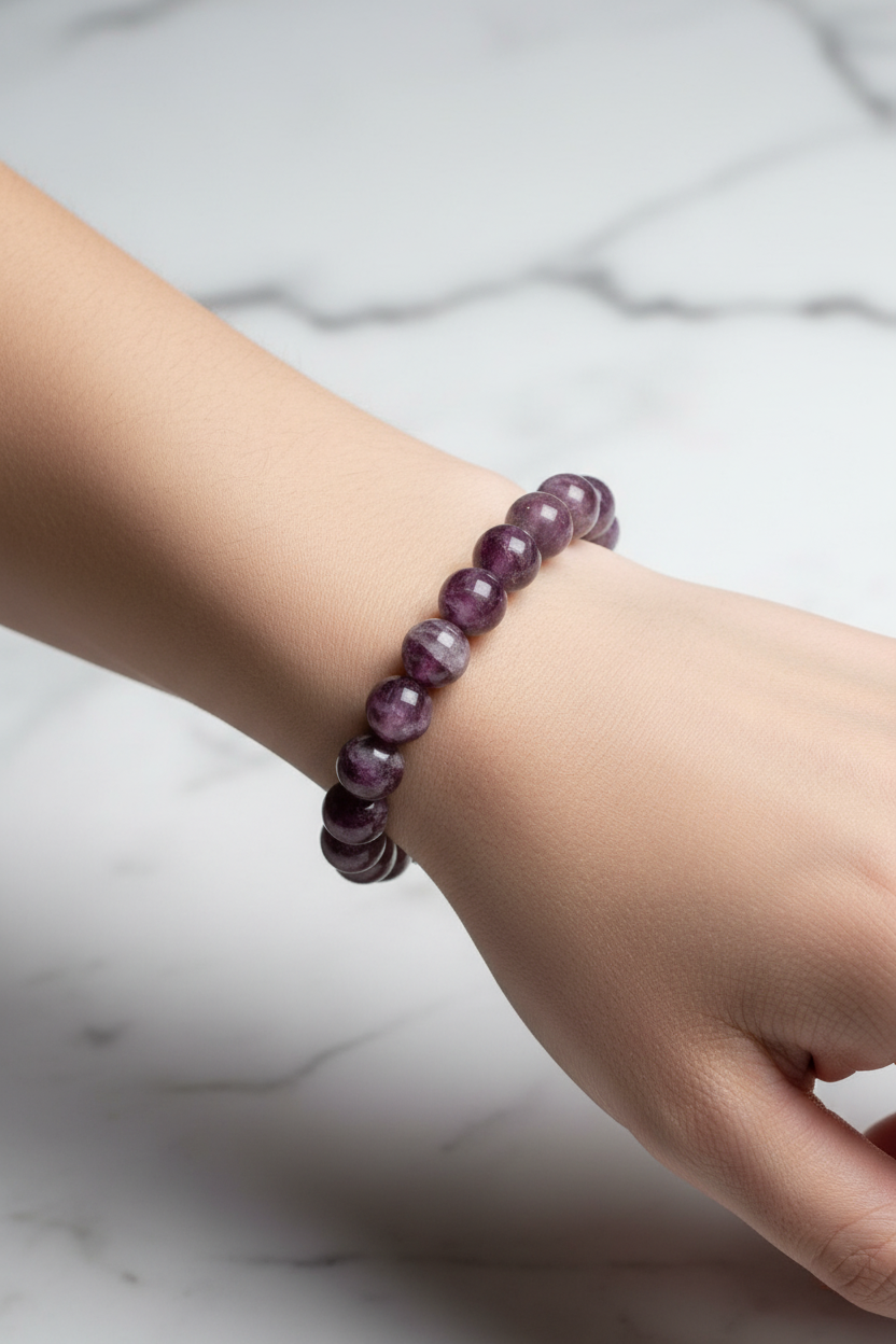 Premium kalite lepidolit taşlarıyla tasarlanan bu doğal taş bileklik, modern ve zarif görünümüyle öne çıkar. El işçiliğiyle özenle hazırlanmış olan tasarım, hem günlük kullanımda hem de özel günlerde şıklığınızı tamamlayan estetik bir aksesuardır.