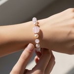 Pembe kuvars, inci ve hematit taşlarının zarif uyumuyla tasarlanan bu doğal taş bileklik, modern ve şık görünümüyle öne çıkar. El işçiliğiyle özenle hazırlanmış olan tasarım, günlük kullanımda ve özel günlerde stilinizi tamamlayan estetik bir aksesuardır.