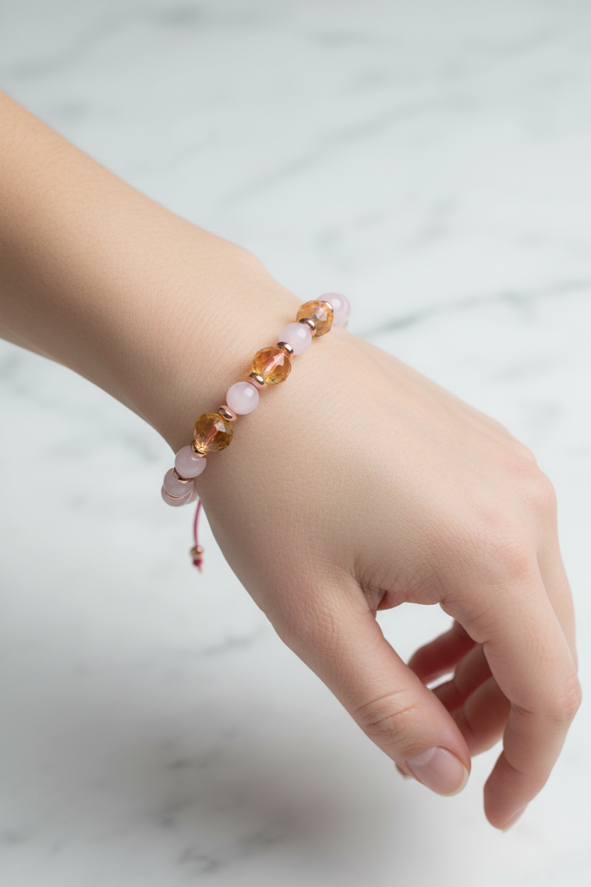 Pembe Kuvars ve Sitrin Fasetli Doğal Taş Bileklik – Unisex Şık Tasarım