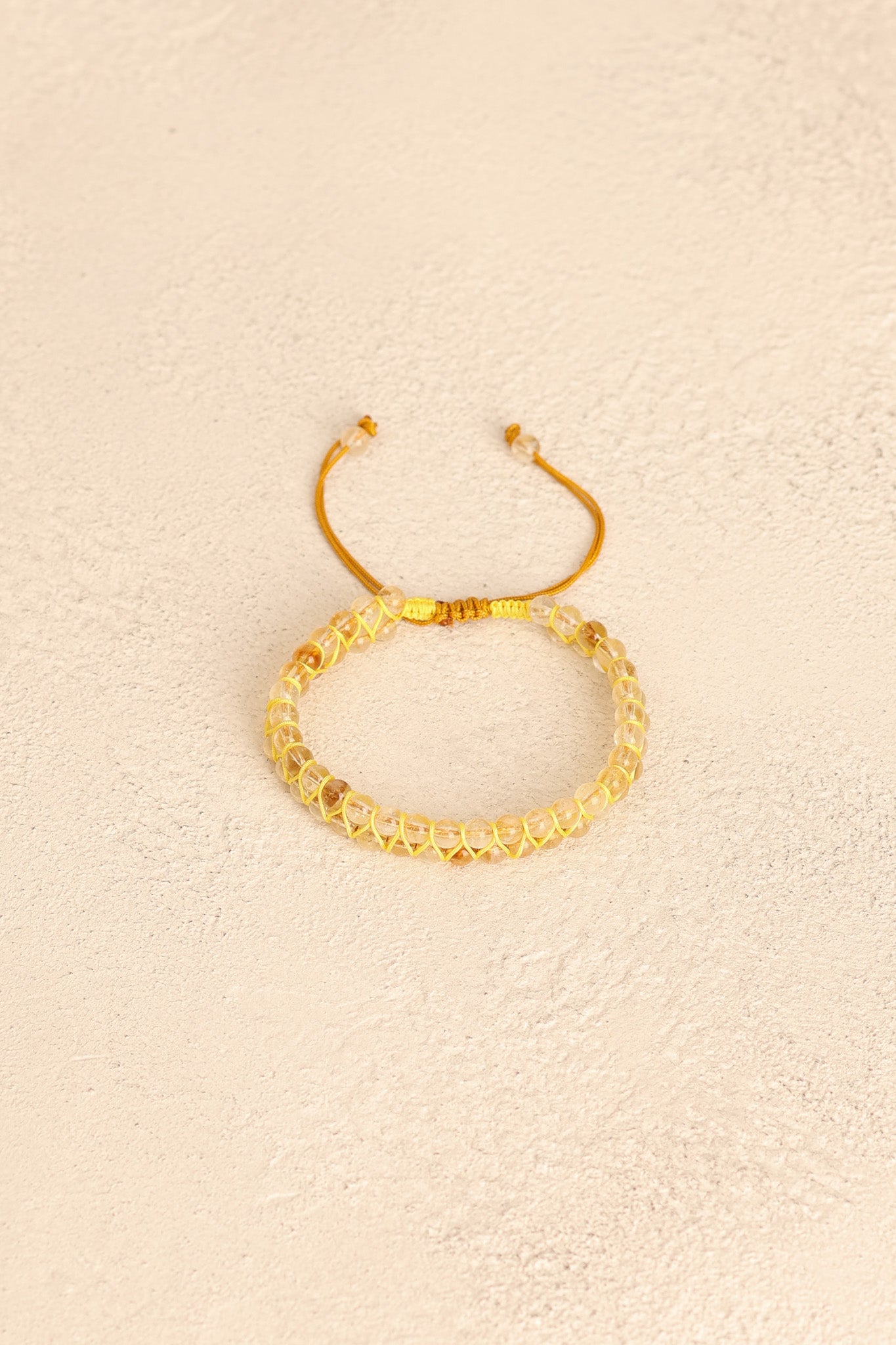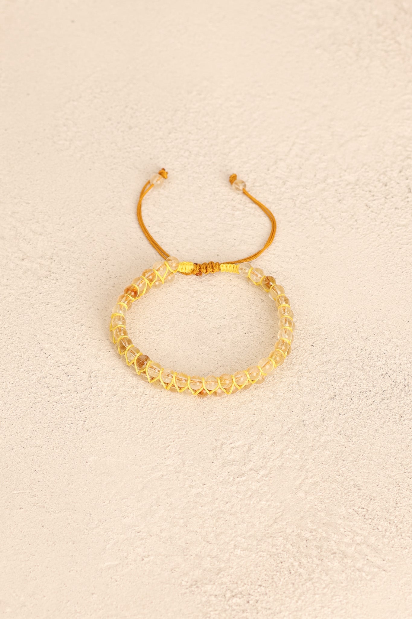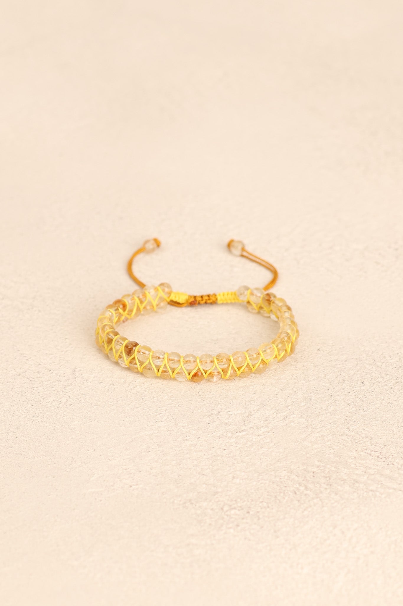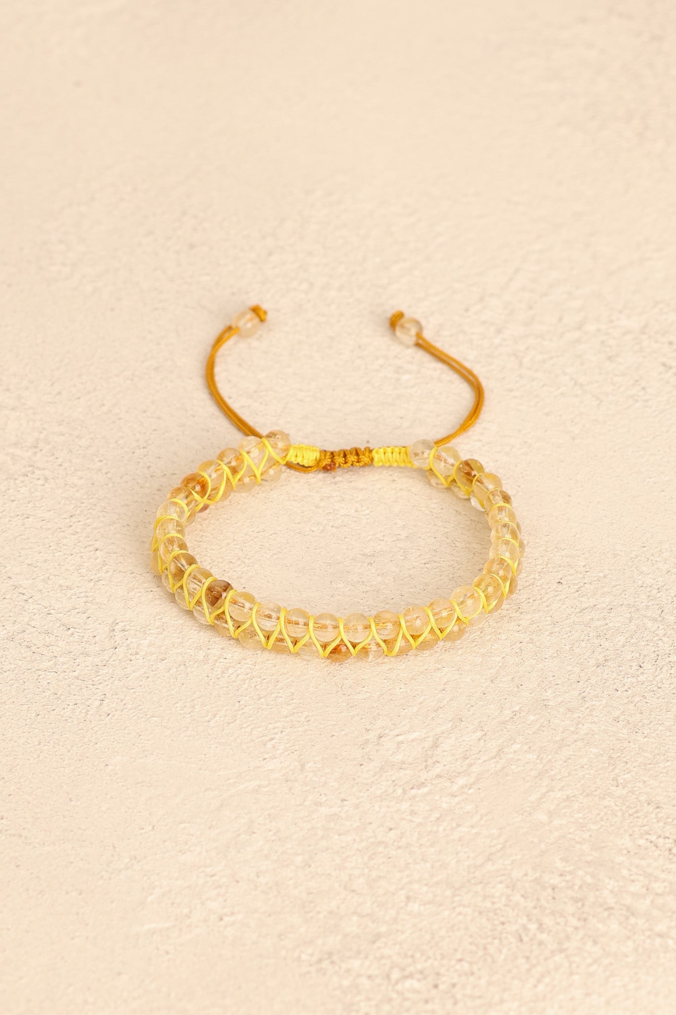 Pirtash ile sitrinin canlı sarı tonlarını, çift sıra makrome şıklığı ve bilimsel güvenceyle bileğinizde taşıyın.