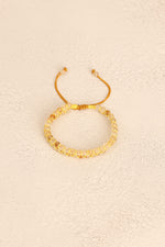 El işçiliğiyle hazırlanan ayarlanabilir makrome bağlama sistemi, bilekliğe hem zarif hem de dayanıklı bir form kazandırır.
