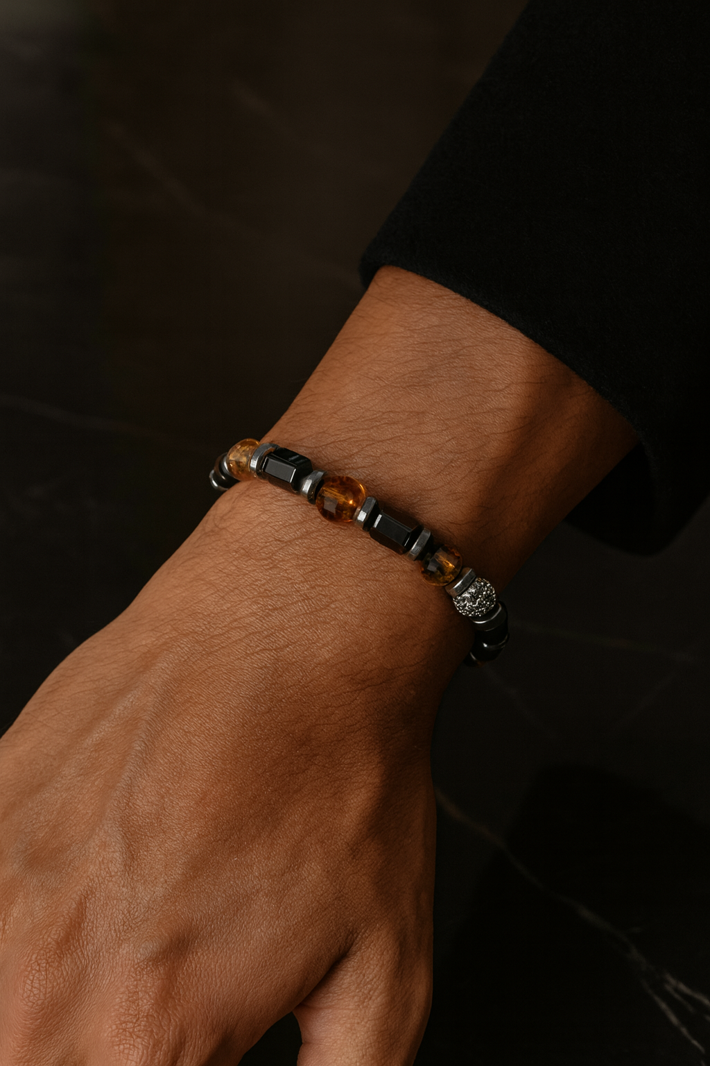 Sitrin ve hematitin güçlü uyumunu yansıtan bu bileklik, stiline modern ve zarif bir dokunuş katmak isteyenler için vazgeçilmez bir parçadır.