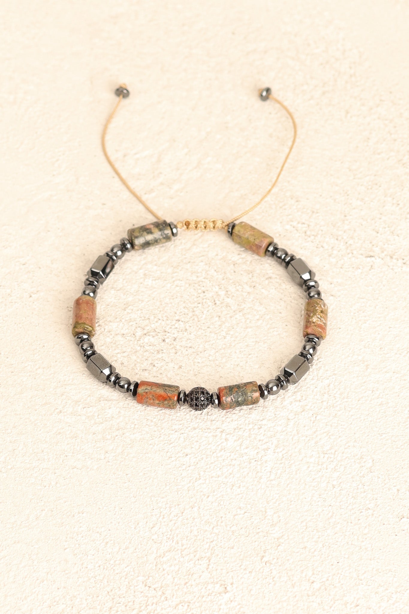 Sertifikalı Unakit & Hematit Doğal Taş Makrome Bileklik | Pirtash | Özel Üretim