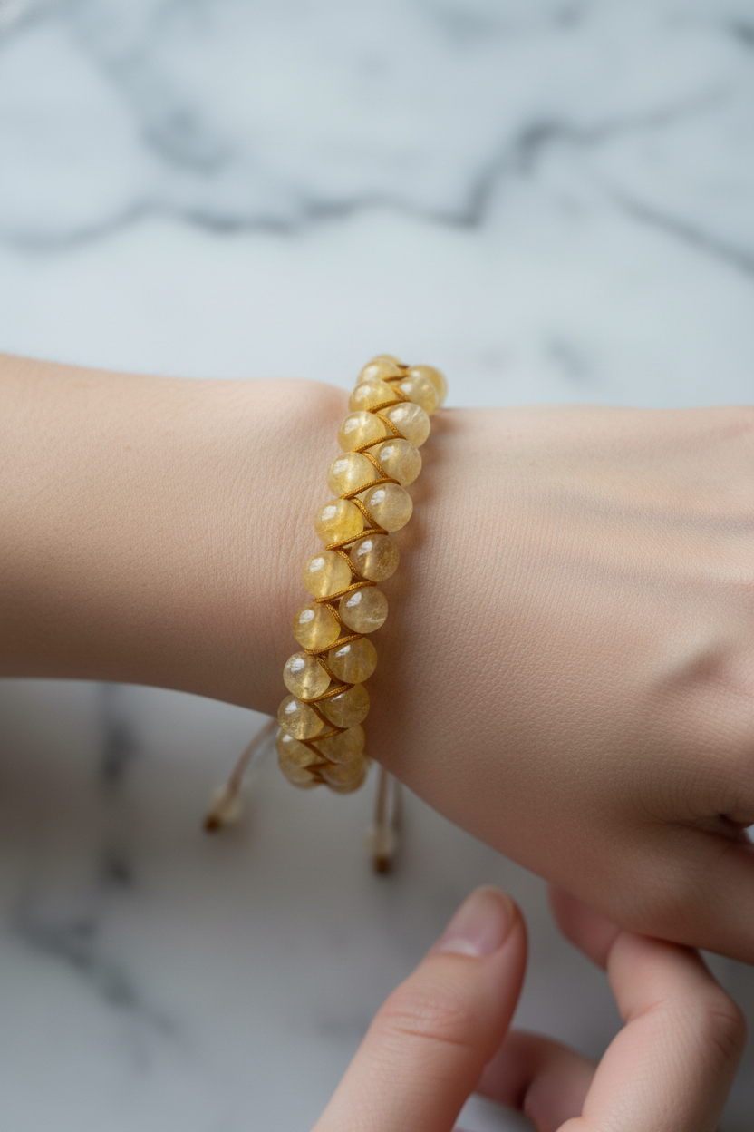 Sitrin 8mm Çift Sıra Makrome Doğal Taş Bileklik