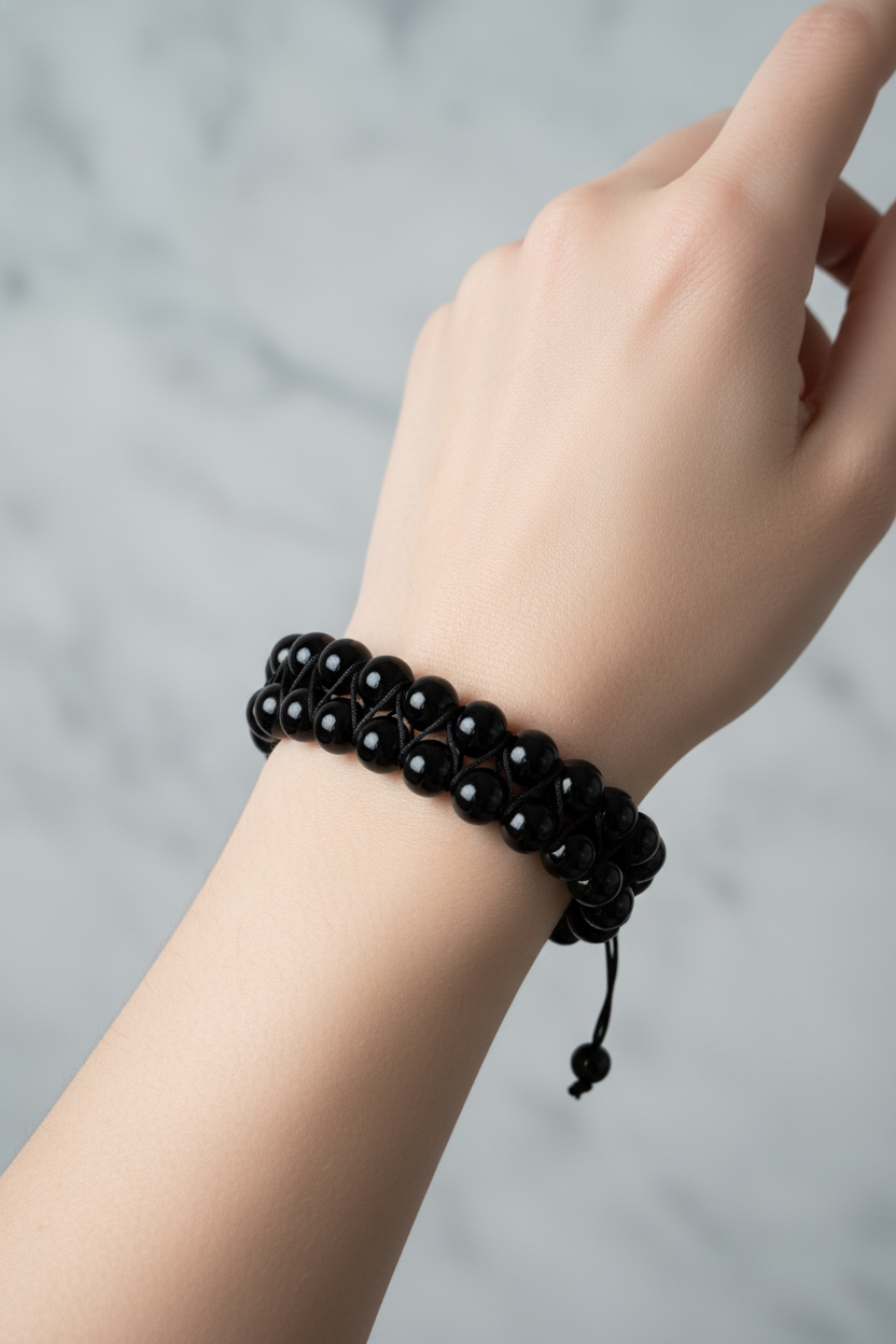 Siyah Turmalin 8mm Çift Sıra Makrome Doğal Taş Bileklik